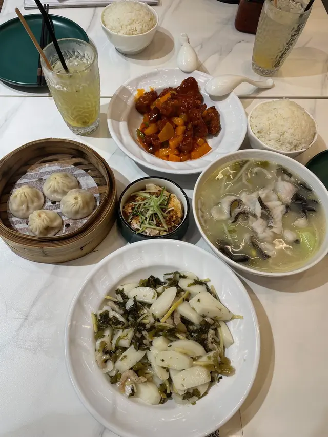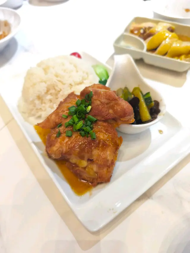 新開咗一排嘅上海嘢,觀望咗一段時間終於決定試下。入到去一坐低,staff就過黎話每人送一碗例湯,出乎意料地好味,好甜 唔似係味精湯,都唔算好油。menu超多嘢揀,睇睇下其實呢間都唔似上海嘢,似係咩都有嘅fushion多啲燒肉醬汁香蔥雞扒飯有包埋個冷盤 木耳伴青瓜。 雞扒煎得啱啱好,幾嫩,但稍嫌細塊。有燒肉汁可以撈飯食無咁dry,啲汁都唔算太鹹,配埋啲蔥係香嘅。冷盤嘅青瓜爽口,但我唔鍾意佢用隻醋太濃味,用返淡少少嘅醋會比較襯佢清新嘅味道。飲品方面,豆漿係杯上,唔係支裝,唔知係咪因為咁可以叫少甜。甜度啱啱好,又有豆香,呢個推。相較之下奶茶麻麻。另外仲叫咗上海金不换肉躁香煎豬扒飯,呢個豬扒比雞扒大塊,好juicy唔會話煎得太乾。肉躁俾得好大方,一定夠撈晒成個飯,金不换輕輕吊下味,唔會好搶,味道balance得幾好。另一大期待花雕醉雞 酒香撲鼻但唔會太嗆,啲雞好入味同好滑。天時暑熱食返啲冷盤cool down好正。上海粗炒有驚喜!本身一上枱見佢唔太上色,仲以為有啲不妙,但食落口又夠味喎,同出面連鎖嗰啲上海店比無咁油/重口味,感覺係健康ver之餘,應有嘅味都無少到,配料都唔少,對得住價錢。呢個性價比,再加埋啲staff都幾好招呼,有下次😻…查看更多
