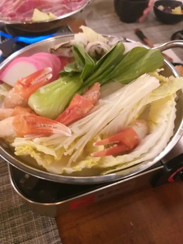 觀塘有為數不少在工業大廈內特色小店,能試好多不同款式,今次經朋友介紹,見網上訂位都幾full,幸好早去店員能安排即時入座,一人一份晚市套餐,每份套餐除左配白飯外,還有沙津、甜品、飲品,點了以下套餐:1. 壽喜燒牛肉鍋定食配橙汁:大量白菜鋪底,上面放滿牛肉及一隻雞蛋,肥牛幾好食,滾住幾好食。2. 泡菜豚肉鍋配熱檸檬茶:同上有大量菜鋪底,放滿豚肉片及泡菜,肉質唔厚口感唔錯。3. 蟹鉗海鮮鍋定食配橙汁:海解有蟹鉗外,還有日式魚蛋及蠔,亦有白菜鋪底,面頭有小棠菜及金菇。沙津菜新鮮好食,而甜品是一粒泡芙,冇什麼特別。服務態度唔錯,上餐速度快,讚讚讚!!!查看更多