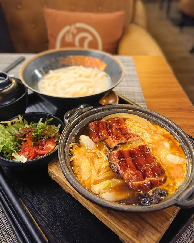 店鋪位於觀塘飯堂駱駝漆大廈,主打各款日式料理,午餐主要提供定食。所有餐椅及梳化都非常軟綿綿,坐得非常舒服!!🤗- 滑蛋鰻魚烏冬定食 HK$82 🥚🐟🍜日式風情補身鰻魚!!鰻魚份量相當大條,魚味濃郁肉質細嫩,充分鰻魚獨有濃郁香氣!!滑蛋熟度恰到好處,半流心蛋液融入日式鰹魚汁,帶有濃郁的蛋香,滿滿幸福感!!底部洋蔥絲吸收了鰹魚汁所有精華,搭配飯或烏冬一起食用都味道一流!!烏冬使用了粗身急凍烏冬,有微微彈性。定食還包含蟹籽沙拉及味增湯,性價比不錯!!- 照燒雞扒飯定食 HK$59 🐣🍚- 咖哩吉列豬扒飯定食 HK$62 🐷🍛- 咖哩牛肉飯定食 HK$66 🐂🍛查看更多
