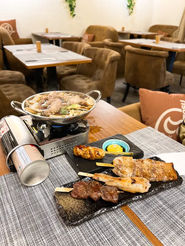 駱駝漆大廈真係好多美食!今次又嚟咗呢幢大廈覓食, 試咗呢間日本料理小店~ 平日夜晚大約7pm過嚟唔算太多人, 可以坐梳化位置🛋, 舒服啲~𓌈˒˒ 壽喜牛肉鍋🥩牛肉油脂豐厚, 肉質柔嫩, 而且充滿油脂香!用壽喜燒食法品嘗牛肉, 更能食到牛肉本身嘅鮮嫩同美味, 鹹鹹甜甜的, 滑順又多汁~ 蘸上蛋液後, 入口會多一份滑嫩嘅蛋香感🤤!𓌈˒˒ 鹽燒牛舌牛舌爽彈, 調味唔錯👍🏻!𓌈˒˒ 手打免治雞肉棒 - 雞肉肉質軟嫩, 裡面夾雜著少量雞軟骨, 再沾上日本蛋黃🥚, 增添濕潤感, 口感豐富!𓌈˒˒ 阿波尾雞手羽 - 燒到外皮微脆, 內裡仍能夠鎖住肉汁, 好Juicy查看更多