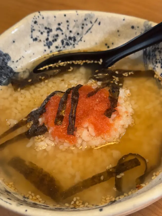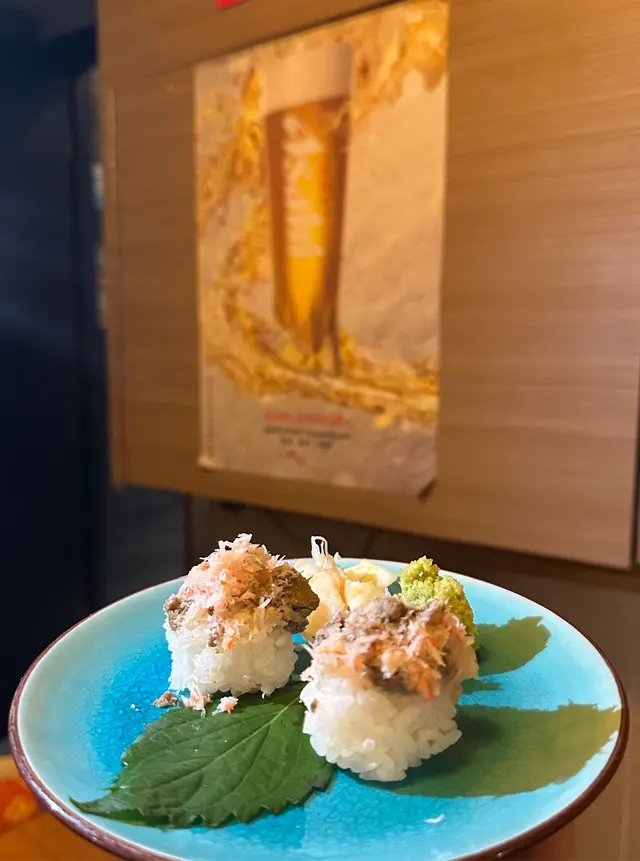 依間樓上日本餐廳坐得幾舒服,裝潢經典日系,木枱凳坐得舒服😌。侍應服務細心,會適時替我們執拾及加茶。蟹籽沙律沙律🥗夠凍幾好食😋。切成幼絲口感幾好。雞腎串及七味燒粟米🌽串燒幾惹味有咬勁。七味燒粟米去核,外面很少見,一粒粒口感過癮。木魚絲苦瓜玉子薄餅🍕遠睇係pizza但食落個「餅底」係蛋餅,又扮得幾似;個味調得幾香。配料苦瓜唔苦幾易入口有甘香餘韻。鐵板牛舌粒有驚喜!小食用鐵板上菜,炸炸聲熱烘烘,牛舌有很多汁好juicy,切到粒狀肉質好嫩滑。牛油果🥑軟殼蟹卷--軟殼蟹超脆身。