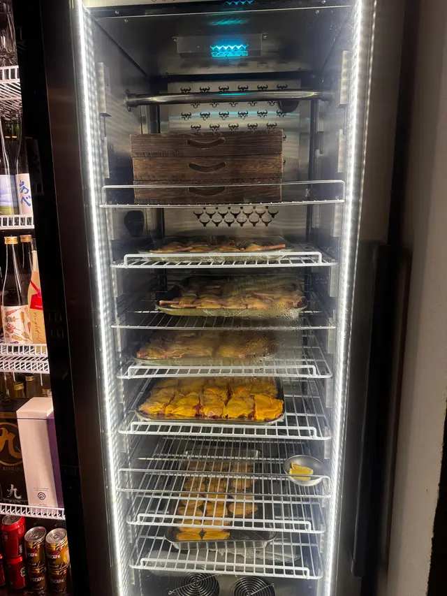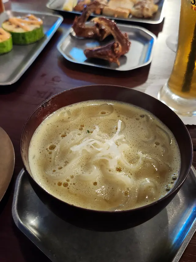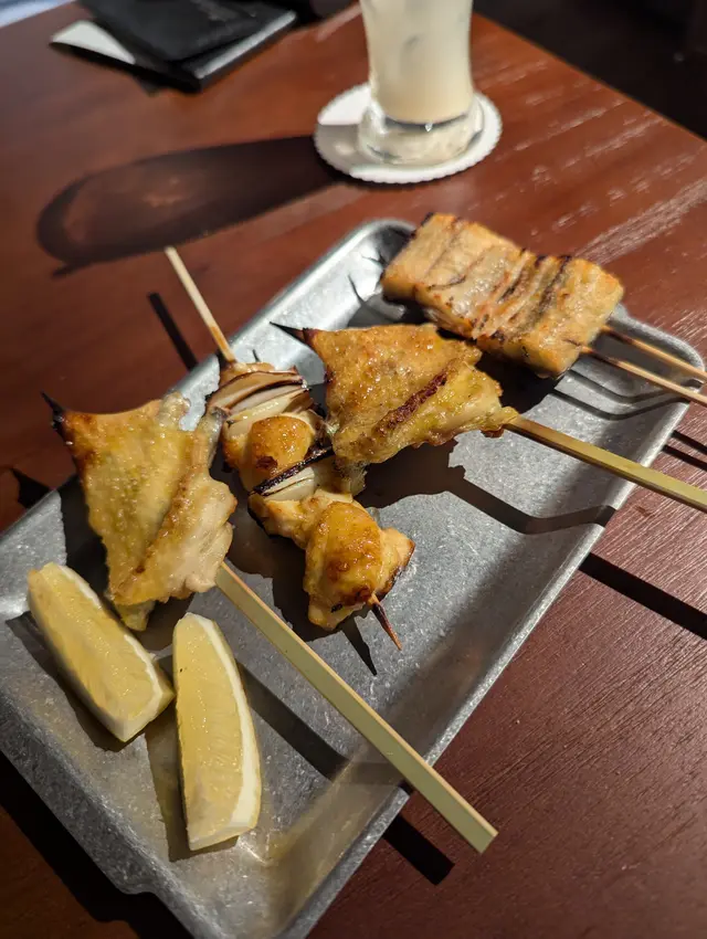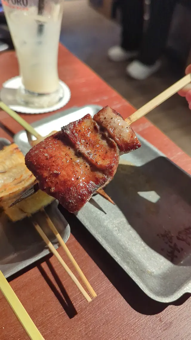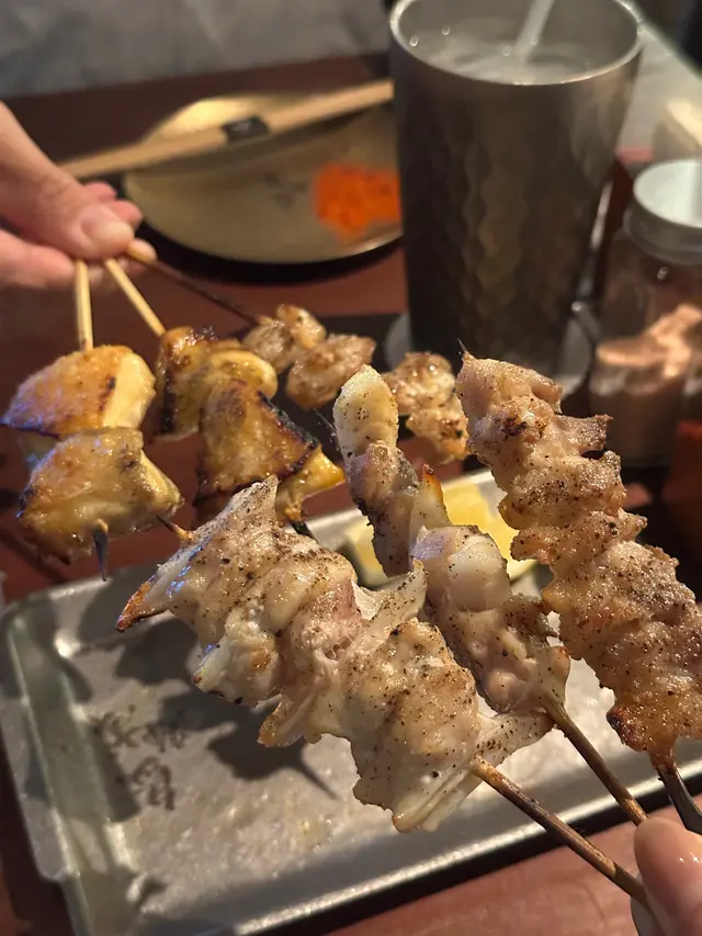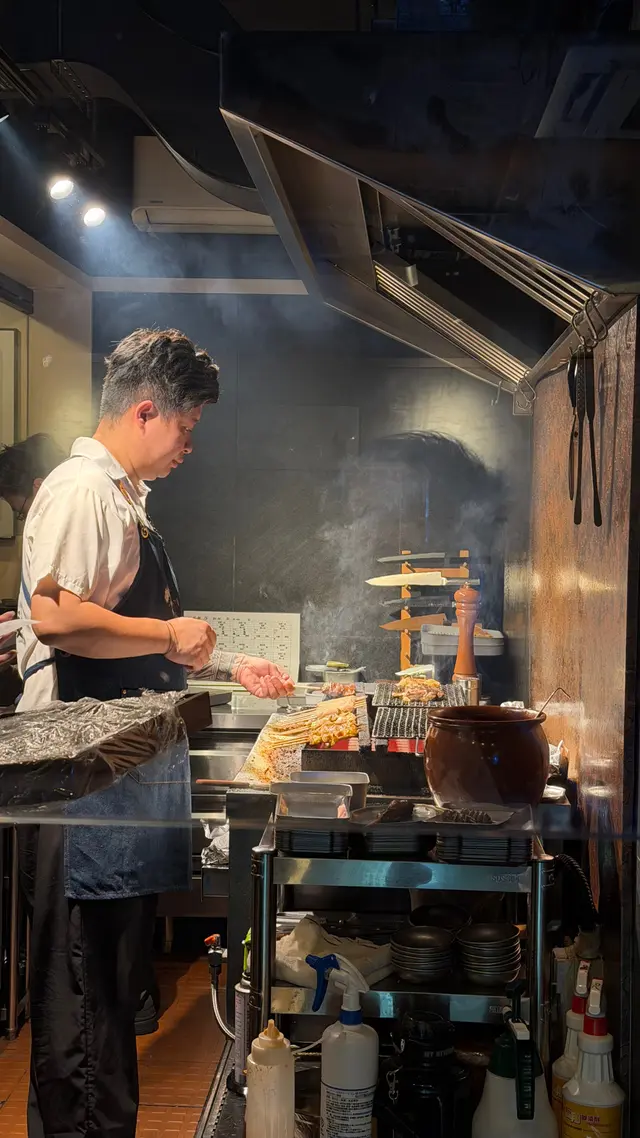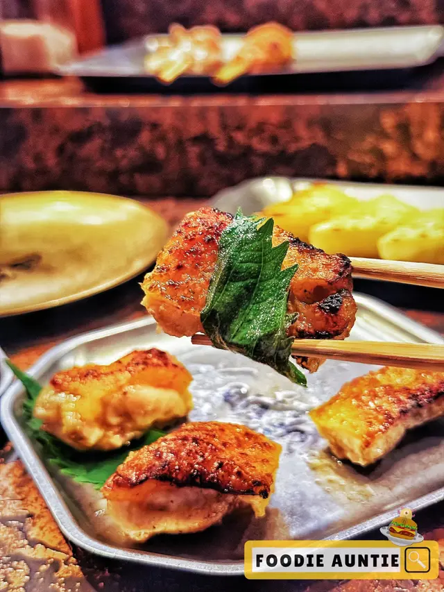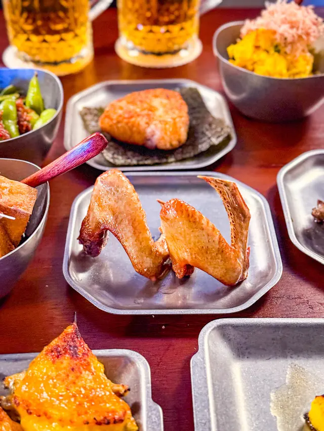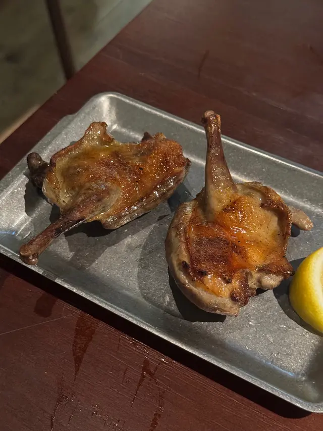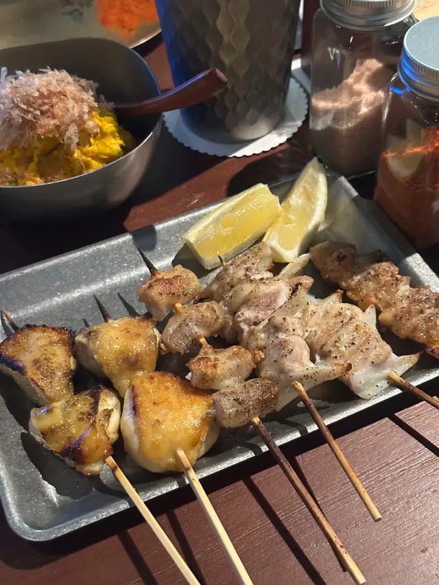 最近發現銅鑼灣有間隱世串燒新店,專玩乾式熟成技術,仲要係全港首間自設熟成櫃嘅燒鳥店!用本地三黃雞同日本土雞,裝修走日式居酒屋風格,昏黃燈光加吧檯位,可以睇住師傅即燒,氣氛幾chill~最正係晚市有免費鴿翼送,未點菜已經有得食!今次試咗幾款招牌熟成串燒,「熟成特上鴿皇胸腿肉」真係一試難忘!乳鴿經過48小時熟成,肉質粉嫩多汁,外皮燒到脆卜卜,鴿味濃到似食緊迷你版燒鵝,絕對係全場MVP!「三黃雞腿肉」分前後腿四件,雞皮香脆肉質嫩滑,店員教路後腿要包紫蘇葉食,果然清新解膩~「自家製月見免治雞肉棒」沾滿蛋黃同醬油,口感豐富,係完美嘅comfort food!其他串燒都各有特色,「明太子翠肉瓜」明太子鹹香配多汁翠肉瓜,平衡得剛好;「本地活豬玻璃肉」肥瘦均勻,燒到脂肪透明如玻璃,入口即化!主食「特濃花膠雞白湯烏冬」超抵食,湯底熬足12小時,奶白色濃郁到黏嘴唇,花膠份量唔孤寒~飲品推薦「桔仔薄荷鴨屎香茶」,清新解膩,同串燒出奇地夾!整體嚟講,串燒火候控制得好好,熟成技術真係令肉質提升不少,價錢合理(仲有Sapporo買一送一!)。但缺點係稀有部位有時賣晒,旺場服務稍忙亂。聽聞老闆之前喺Nadagogo學藝,質素有保證。…查看更多