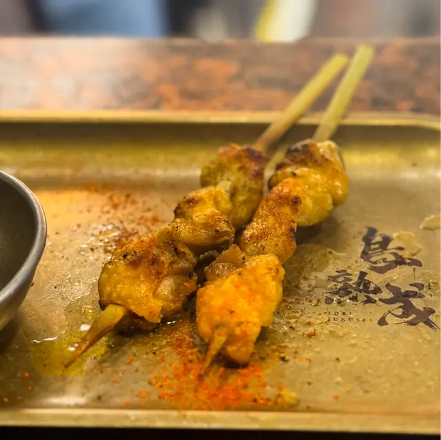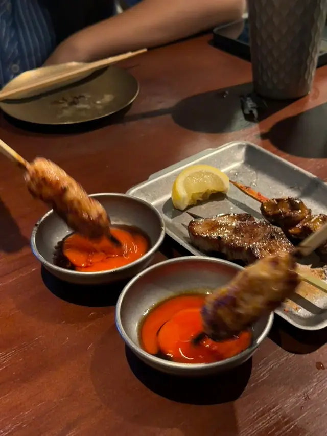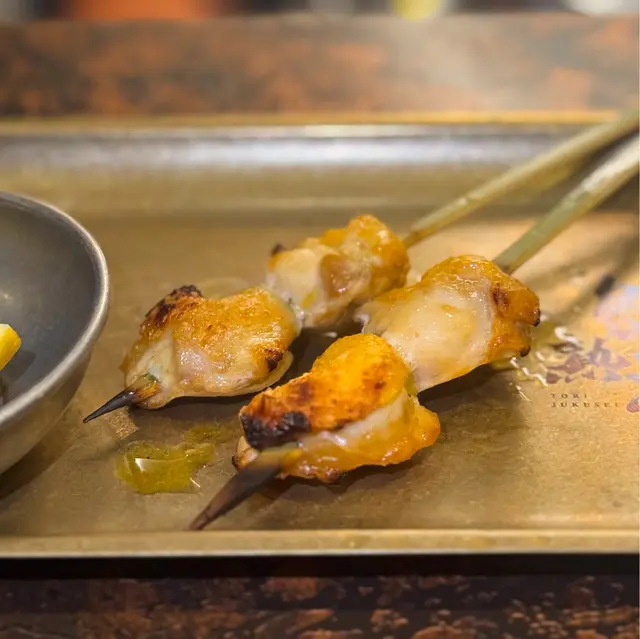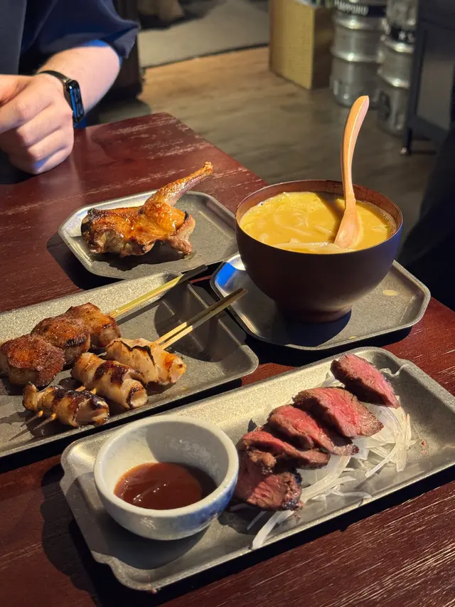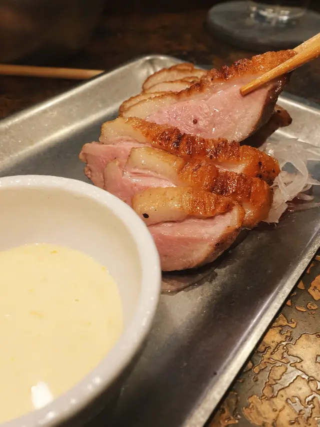 最近試咗呢一間銅鑼灣新開嘅樓上燒鳥店都真係幾高質👍🏻首先會送上一道welcome food~是燒鴿翼🪽鹹香惹味很適合送酒🍺-🍺High ball / $55 -🍹巨峰乳酸梳打 / $35到串燒部份🍢~串燒都係新鮮即燒🔥串燒火喉都控制得恰到好處,表面微焦但肉質都保持住好Juicy😋👍🏻特別鍾意佢哋嘅燒雞翼🐔呢度最出色嘅一定要試佢哋熟成48小時嘅鴿皇胸腿肉‼️真係十分之出色🥹啖啖肉之餘口感嫩滑!而且味道很濃郁!肉質非常鮮美細膩!經過熟成過程肉中的油脂分布均勻~食落去嘅感覺零舍唔同。實在太好食最後encore多一隻🤤~另外絕對要提埋佢哋嘅花膠湯烏冬!個花膠雞湯底真係好正~非常之濃郁❤️-🍜特濃花膠雞白湯烏冬 / $38-🐔三黃雞中翼 / $22-🐔三黃雞腿跟腱 / $32-🐔日本雞皮 / $24-🐔青葵蟹籽雞肉串 / $28-🐔日本雞中翼 / $34-🕊️熟成特上鴿皇胸腿肉 / $58-🦆生燒熟成合鴨胸 / $58-🐓自家製月見免治雞肉棒 / $42-🐷本地活豬玻璃肉 / $32-🐷荔枝豚肉卷 / $28-🌽牛油燒粟米 / $18-🍙日式燒飯糰 / $38…查看更多