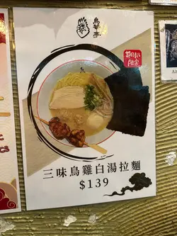 鳥華亭, 位於灣仔交加里, 店子不大, 感覺好像去了日本新宿的居酒屋,門外掛滿日式燈籠, 帶著日本濃情. 師傅勤力地工作, 食堂內氣氛熱鬧.店員安排給我們的座位頗好, 臺上有冰壺, 抹手紙, 調味粉, 好方便.看看彩色照片, 點品清晰無難度. 小食以雞為主, 款式不少, 配拉麵至夾. 店員提供落單紙, 大家填上喜好便可, 簡單快捷. 我們一起點麵. 麵條, 可選擇種類及軟硬度. 另外辛辣麵, 可分少辣, 中辣, 大辣.我 點了 至極雞白湯拉麵 $99熱熱的送上, 先吃片 低溫慢煮的雞胸肉, 入口綿滑.伴有炸蓮藕片, 香口爽脆. BB 蘆筍, 鮮嫩 . 最開心有溏心蛋, 蛋黃半熟成膏狀. 麵條揀了捲麵, 較粗身, 口感爽滑. 奶白色高湯用雞骨熬成, 呷一口湯, 湯味濃 , 超正 ! 朋友叫了 魚介白湯拉麵 $93 湯頭以豚骨及鰹魚熬成, 濃 陏綿密, 帶海鮮風味, 配上幼身直條麵, 慢煮雞胸肉及蘆筍, 相當可口.追加小食, 叫了 明太子雞翼, 及每月推廣: 任何拉麵 +$28 有 Uni Cream 流心忌廉餅明太子雞翼, 雞翼的皮烤得香噴噴, 肉質滑嫩鮮甜, 裏面更是裝滿了明太子, 味道濃郁香口 又帶些小微辣, 人見人愛Uni Cream 海膽流心忌廉餅, 即叫即制, 上檯熱騰騰. 入囗 酥香又不油膩.師傅專業有水準, 煮出正宗日本濃湯拉麵, 值得推介.下次有時間來嘆 Sake 食串燒也好. …查看更多