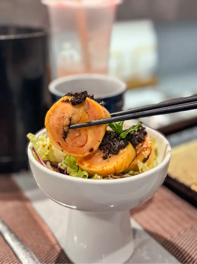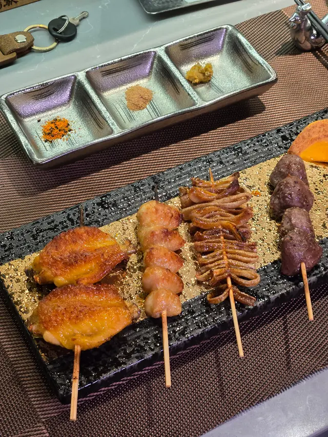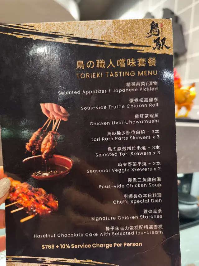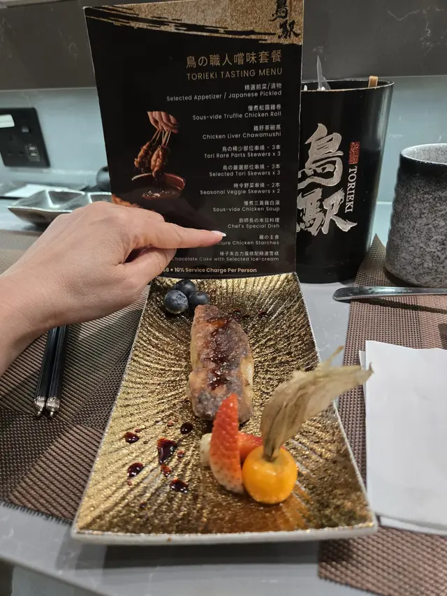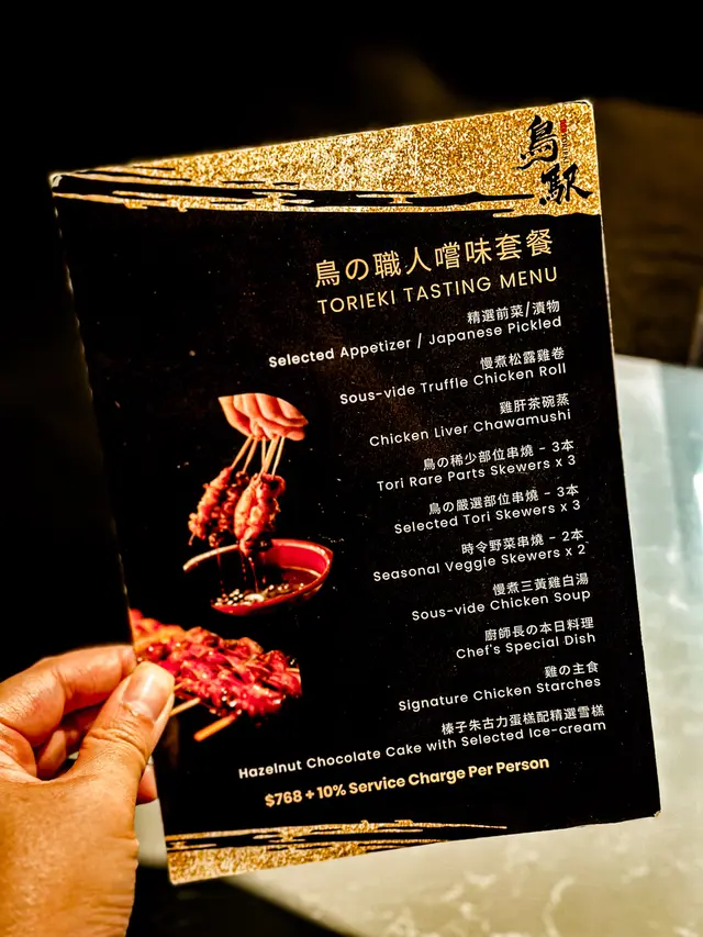 今晚同朋友經過中環新開嘅雞串燒專門店!裝修好特別同好靚,入面仲有sake bar!我地食咗鳥駅嘅「TORIEKI TASTING MENU」,完全感受到咩叫做「雞の藝術」!由前菜到甜品一共10道菜,性價比超高,飽到捧住個肚走~🍶 前菜三重奏• 精選前菜/漬物:清爽開胃,醃製得恰到好處 • 慢煮松露雞卷:雞肉嫩滑到難以置信,松露香氣撲鼻而來• 雞肝茶碗蒸:蒸蛋滑溜,仲放咗足料雞肝增添濃郁風味🔥 串燒盛宴 • 稀少部位三本:雞心彈牙、雞肝綿密、雞軟骨脆口,一次過試勻三個部位 • 嚴選部位三本:雞脾肉多汁、雞翼香脆,火候控制完美 • 野菜串燒:銀杏回甘、豆腐外脆內嫩,平衡肉類油膩🍲 驚喜連場 • 三黃雞白湯:濃郁到黏嘴唇!慢煮精華盡在其中 • 廚師長特別料理:燒鴨肝!!真心好好食,外焦內化,入口即溶,邪惡到極致 • 主食配置:雞湯烏冬清甜解膩🍫 完美收官 榛子朱古力蛋糕配雪糕,濃郁朱古力與冰涼雪糕形成絕妙對比,為盛宴畫上完美句號。…查看更多