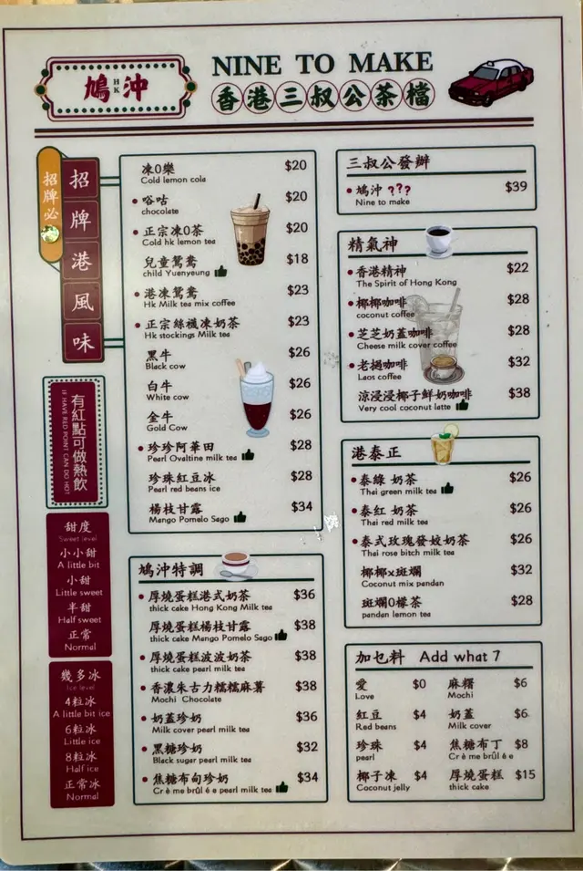 這是一間在大角咀新開業的港式茶飲店🧋店主有十多年茶餐廳及四季酒店水吧經驗,以經典港式飲品為基底,注入新元素打造全新創意港式茶飲🤩招牌正宗港式飲品由$18起,就可以試到啦😉如果想飲創意配搭的,$29起就可以試到特調飲品啦😙店舖設計懷舊復古,牆上貼上有香港地鐵站牌,更掛著舊式電話做裝飾☎️好有香港特色,夠晒打卡able🥰厚燒蛋糕楊枝甘露 $38必試厚燒蛋糕系列‼️以楊枝甘露為基底,頂層是香滑濃郁的厚厚奶蓋並灑上糖粒,以火槍燒過後立刻變成薄脆焦糖面,十足食緊焦糖燉蛋,好creamy😍配搭鮮甜幼滑的楊枝甘露,口感豐富,也不會太甜❣️珍珍阿華田沙冰 $38鍾意飲阿華田的我,就梗係叫番杯呢🤩飲落非常有驚喜,阿華田打成沙冰味道依然濃郁,而底部是黑糖珍珠,整體不會太甜,讚👍🏻除了飲品外,店舖還有提供「兩餸飛碟」,點一杯飲品 +$20 就可以加購啦❗️…查看更多