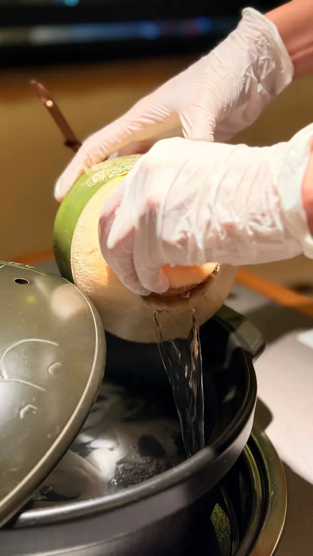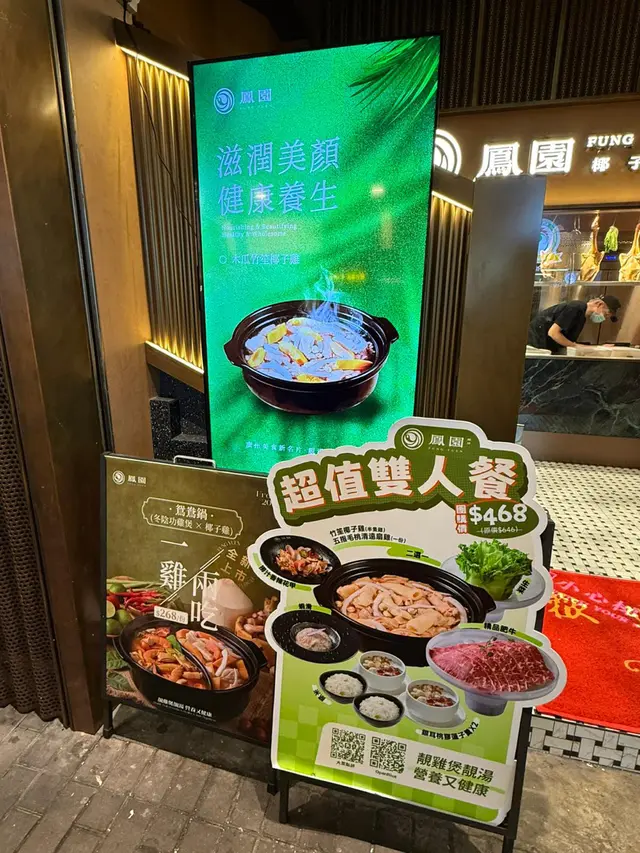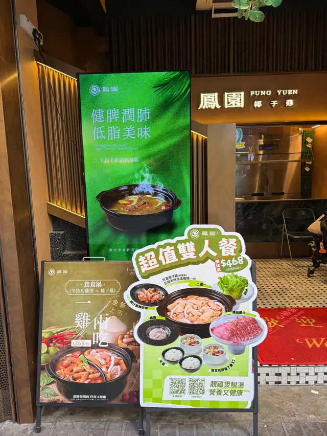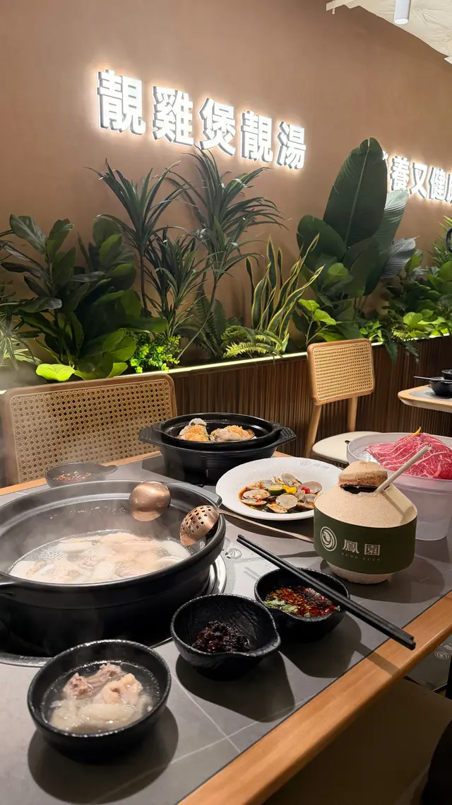 最近喺旺角地鐵站附近食咗椰子雞店內裝潢以木系為主 營造溫馨舒適環境適合家庭聚餐或朋友聚會招牌菜椰子雞系列選用文昌雞同新鮮椰青作為基底 🔸竹笙椰子雞落單之後店員將泰國進口椰青即場開殼!椰子水直接流入鍋 真係口水都流哂出嚟店員隨手就將文昌雞放埋入鍋 然後計時雞熟之後必須要飲啖湯 無比鮮甜而文昌雞特點係唔會過多脂肪飲多啖湯都唔會有膩嘅感覺絕對係靚雞靚湯優質元素完美結合!煮熟嘅雞肉亦非常鮮嫩配埋青檸、沙姜等蘸料 口感層次豐富整體性價比高 養生滋補嘅一大選擇!🔹空中花園以空中花園命名嘅食物拼盤食材包括牛肉、各式菇菌、牛丸、蝦丸以及新鮮蔬菜食材選用新鮮材料,配搭椰子雞湯就更加出色🔸臘味煲仔飯最中意煲仔飯嘅我又點會錯過臘味煲仔飯臘腸、臘肉嘅油脂滲入米飯 飯粒做到粒粒分明 鍋底仲有飯焦 口感極佳🔹百香果香橙水兩款多汁嘅水果 味道清新口味酸甜適中非常解渴🚩 鳳園椰子雞旺角鼓油街 36-42 號榮高大廈 G 層-2 層…查看更多