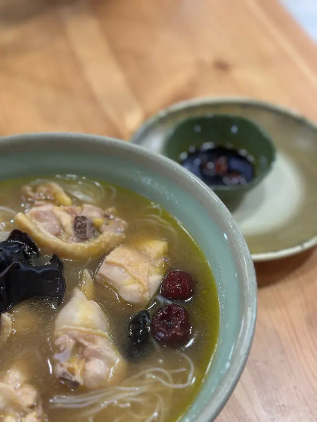 話說今日黎到上水,鍾意藥膳味道嘅我梗係要去食吓鳳鳴居。一個人,拎左飛,門口等。前面有個伯伯到飛,入去坐低左。中間隔左幾張二人枱,然後終於輪到我,但喺無人講聲嘅情況下,我對面突然坐低多個人,原來要搭枱。Ok ge, 明白生意好,一個人食無理由霸一張二人枱,但係點解開頭唔放埋我入黎同伯伯搭枱呢?有趣🤔到落單,叫左個最經典嘅醉香雞米粉,加杯凍檸茶,口痕想食埋個蒜辣雞翼尖😌侍應落單無表情,無回應,明嘅,唔係個個都有一個想服務嘅心,都係打份工姐。落完單,收到張單,5分鐘未夠碗麵已經到,佩服佢出餐速度。以湯底黎講,我覺得佢聞落同飲落都有藥材香,係幾好,不過可能淨係藥材唔夠味,所以另外有加調味料,所以飲飲吓覺得個湯底有啲鹹,不過都係可接受。突然,帶位個女人行埋黎換左我張單,無出聲。我見到張單少左個雞翼尖,我心諗應該係賣晒,舉手問一問,果然。但帶位個姐姐,你過黎換單,起碼都同個客講聲吖?換左張單就算,啲野賣晒又唔講,你唔係prefer我要知你地咩事吓話?