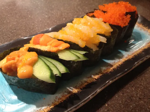 北寄貝沙律軍艦、芒果貝柱軍艦