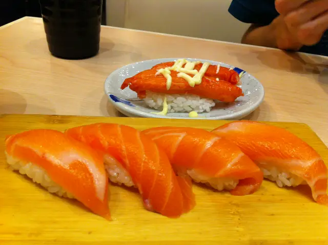 同男友專程過0黎九龍東行街,行到咁上下就係時候搵0野食啦~上到十樓,見到呢間唔駛等位,就入去試下啦^^坐0係迴轉枱,見到坐旁邊0個兩個男仔有4杯水,而我0地就遲遲無水飲...可見服務質素有幾「好」=.= 點0左以下幾樣0野食︰呢個魚生飯我同男友覺得幾抵食~但係我就唔太鍾意D薑絲~整體0黎講都算okay=]三文魚腩壽司唔夠肥美,油甘魚壽司無味,玉子壽司好一般,反而胡麻醬炙燒三文魚壽司就有驚喜,個醬同三文魚好夾=]鹽燒多春魚都好普通~最激氣就係呢幾款軍艦...其他0野食晒都未到~我就醒起0岩0岩旁邊0個兩個男仔好細聲咁話︰「咦?我0地無叫呢D喎...」,我以為佢0地一定會叫服務員過0黎啦~再望一望,又好似係我0地order0個幾款喎~點知隔0左一陣,原來佢0地已經當係送ge食晒-.- 我o晒咀~但係0個時唔可以話佢0地一定無叫0架ma...咁咪叫個經理過0黎,問點解D壽司仲未到~佢行去問D壽司師傅,D師傅同D服務員係咁望過0黎~好似我0地食0左呃佢0地無食咁...0個兩個男仔當無事發生一樣=.= 壽司師傅再整一碟,有個waitress送過0黎竟然係擺係我0地同0個兩個男仔之間ge空位=.= 我就可以肯定之前個服務員唔知放邊而放0左0係0個兩個男仔到=.= 蟹籽壽司一般~海膽唔算好新鮮,但係都可接受~黃金魷魚壽司就正常味道~唔算特別好食~我0地留意下D服務員點做0野~我發現佢0地都幾大頭蝦~成個刺身拼盤都唔知送去邊張枱~跟住我0地食完0野勁口渴都無人理~我直頭拎自己枝水出0黎飲~叫0左幾次先有人過0黎斟水~其實仲叫0左其他0野食~都okay=] 埋單差唔多400蚊~我先知原來茶芥收一蚊=.= 跟住落去行ikea~早知落去食仲平仲開心啦...…查看更多
