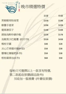 黃金麥片大蝦、欖菜肉沫秋葵、雲南黑毛豬叉燒、海蜇藕尖涼拌、片皮鴨、 -