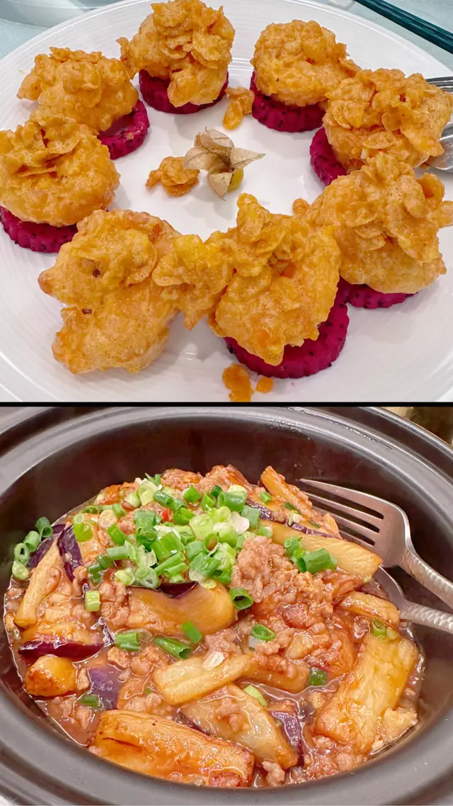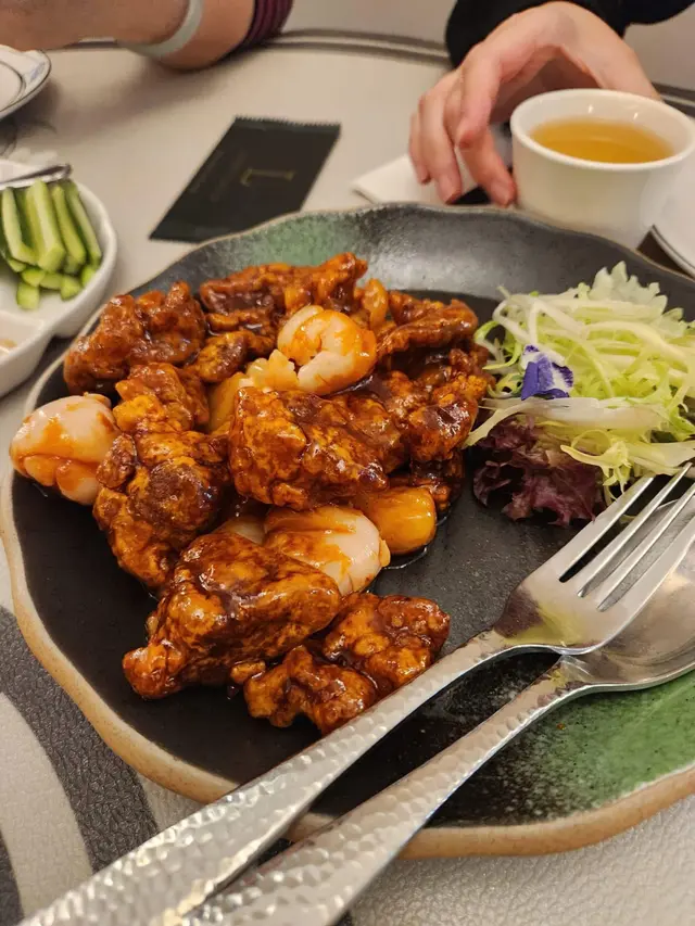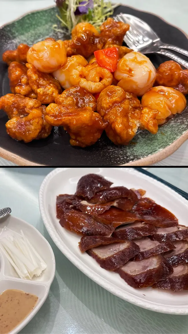 🥢首先講講北京填鴨。這道菜以其獨特的烹調方式而聞名,外皮經過精心處理,烤得香脆可口。當你咬下去的時候,可以感受到那股濃郁的鴨油香氣,肉質則是鮮嫩多汁。餐廳會提供薄餅、京蔥和甜醬,讓你可以自己捲起來吃,每一口都是享受。這道菜不單止是味覺上的饗宴,更是一種視覺上的享受,色澤金黃誘人,讓人忍不住想拍照分享。🥢荔枝山楂咕嚕肉。這道菜的特色在於它的甜酸口味,搭配上炸得金黃酥脆的豬肉,每一口都能感受到肉質的鮮嫩和外皮的酥脆。荔枝和山楂的搭配令整道菜更加清新,不會過於油膩,反而帶出了一種清爽的感覺。這樣的創意組合讓人印象深刻,絕對是值得回味的一道佳餚。查看更多