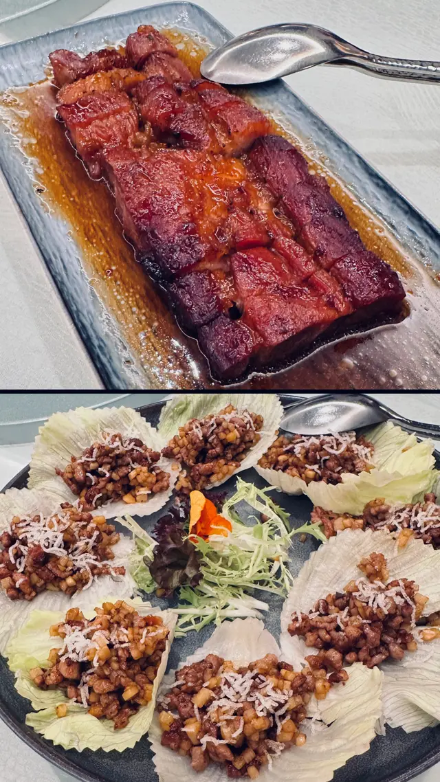 ❀ 鴨大哥 #鰂魚涌 ❀❗米芝蓮星級廚師開設粵菜廳 仲有出色北京烤鴨❗——————————————————繼續Explore太古坊新開嘅餐廳😆太古坊除咗係唔少商業大廈辦公室嘅聚居地,而家仲開咗好多新餐廳🤩今次嚟到頗有名氣嘅粵菜廳,由米芝蓮一星「廚魔」名廚Alvin Leung開創,喺銅鑼灣開到嚟鰂魚涌,提供一系列經典粵菜,仲有招牌北京烤鴨😙餐廳環境高貴優雅,亦有包廂,非常得體。.✷𝑀𝑒𝓃𝓊✷☞ Tasting Menu $556♥ 北京烤鴨(半隻) (4/5)片皮鴨肥瘦適中,皮肉比例剛剛好,唔會太過油膩,但同時食到鴨香👍🏻而且餅皮非常出色,薄得嚟有少少煙靭嘅口感,非常喜歡😚再可按個人喜好加上香甜烤鴨醬、青瓜條、蔥條、麻醬、黑糖,我最鍾意將所有嘢包埋一齊食,非常豐富好Juicy💦.♥ 雲南黑土豬叉燒 (3.8/5)叉燒嘅肉質頗特別🙈橫切面見到非常緊密,偏瘦但唔嚡。表面有部份燒焦,如果可以更香脆就更出色。味道偏鹹少少,個人喜歡甜啲、蜜汁味更重🤓不過份量真係幾多,基本上一個tasting menu 已經夠兩個人食。.♥ 絲苗白飯.☞ 避風塘生蠔 $228 (3.9/5)生蠔粒粒超飽滿又滑溜🥰炸皮香脆,避風塘夠入味好惹味。——————————————————✨整體味道: 3.9/5 ✨環境裝修: 4/5✨服務態度: 3.9/5✨性價比: 3.9/5✨再訪興趣: 3.6/5.💞整體來講相信係太古坊較為少嘅正式粵菜廳,而且價錢唔會太貴👍🏻幾適合一家大細嚟食飯,甚至作為老闆同事gathering嘅好去處。查看更多