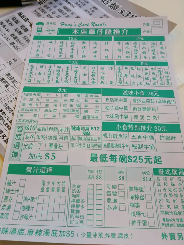 車仔麵一向係香港人嘅至愛之一,今次經過光輝圍,亦懷念舊有港式風味,一於一試呢間喺香港唔少地方都有分店嘅鴻仔記車仔麵!// 豬大腸、墨魚卷、牛孖根、辣魷魚 //// 魚皮餃、酸齋、咸牛脷、墨魚卷 //整體嚟講餸菜無咩特別,醬料味道亦唔夠濃厚,只可算係一般街坊質素。如果要揀幾款比較突出嘅,會推薦咸牛脷同墨魚卷,而其他亦只能算不過不失。不過街坊食店嚟講選擇都相對多,亦有好多唔同小食、特飲選擇,如果經過亦可一試,性價比嚟講的確可接受。味道 ⭐️⭐️⭐️服務 ⭐️⭐️⭐️環境 ⭐️⭐️⭐️性價比 ⭐️⭐️⭐️⭐️查看更多
