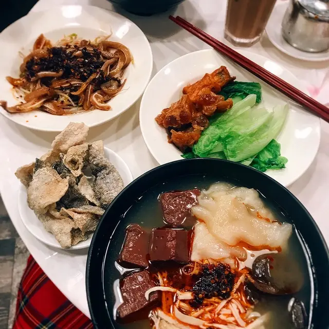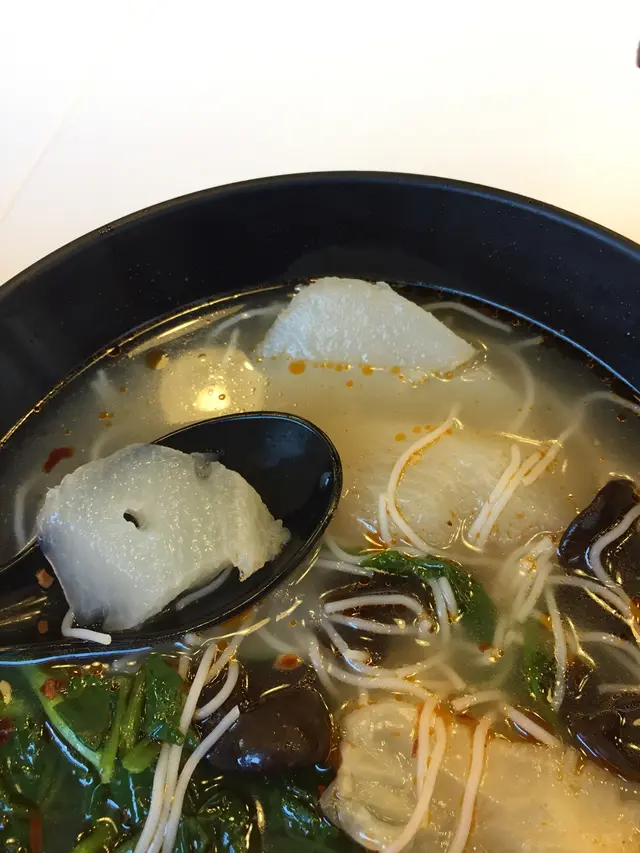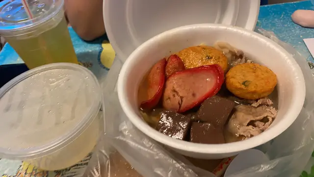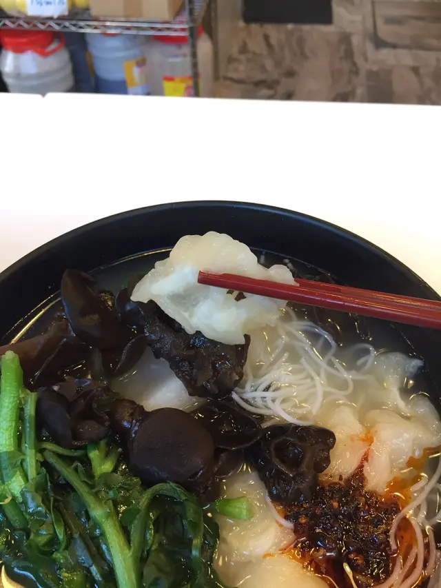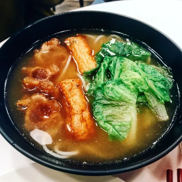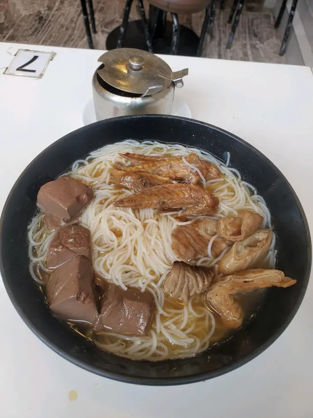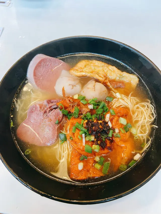 今日去咗葵興嗰邊開會而且又非常之趕時間所以就見到一間車仔麵店就諗都冇諗就入咗去呢度有非常之經濟實惠嘅四餸麵只係$38咋所以我就好快咁樣就決定咗要食呢個四餸麵咁配菜方面我就叫咗紫菜腐皮雞絲同埋牛舌而麵我就叫咗米線我覺得佢個牛舌非常之好食係呢一個四餸麵入面仲要有三舊超大舊嘅牛舌真係超級抵食而且佢唔係淡茂茂嘅牛舌而係鹹牛脷 所以好好食除此之外我仲叫咗一個炸凌魚球一客有四大粒嘅凌魚球非常之抵食呀真係呢一間車仔麵店真係有驚喜查看更多