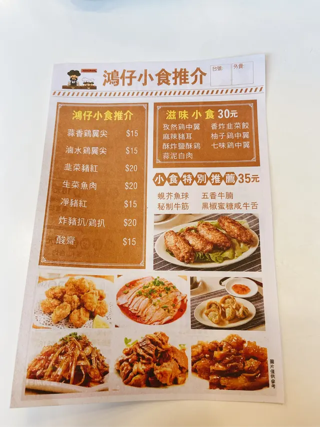 鴻仔記一間位於葵涌光輝圍嘅車仔麵,招牌大大,相當易揾。店內間隔同一般麵店差唔多,但整體上裝修略帶新穎,所以都令人覺得乾淨企理。煮麵廚房雖然唔算大,但就好似魔法盒咁,可以變出多種類食物首先睇吓鴻仔記嘅鎮店車仔麵,價錢正常,選擇也算多,個人特別推介鮑汁花膠,而牛舌更唔係每間車仔麵可以揾到嘅餸。秘製牛双筋骨膠感極重唔好錯過。另外只要好好利用4餸麵點餐就可以以優惠價食到滿足嘅一餐。點解話佢廚房係魔法盒,因為老闆為配合食客所須,就連酸辣,麻辣米線都做埋而無飯不歡嘅客人都有飯食為你供應,只夠佢做言歸正傳我碗麵黎啦,牛腩,豬紅,西洋菜,花膠,咖哩魚蛋,有幾種醬料比你配搭,不同辣度,而我就揀左比較大路嘅沙嗲醬,香辣惹味,牛腩同花膠都各有千秋,腩肉炆到剛剛到位,淋身得黎又略帶咬口,而且十分入味,豬紅也不過不失,但魚蛋相信會有進步空間。女皇就揀左花膠,牛双筋,冬茹,蘿蔔,所以餸麵份量剛好 ,連佢都話最後我被牆上海報吸引點左蒜泥白肉,味道也算不錯,但同傳統有所出入,多左份麻香,但個人應為過油,如果減少油份就更加完美。凍鴛鴦,(選擇汽水會好啲),其實唔係差,只係欠缺茶餐廳風味。查看更多