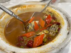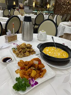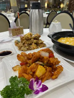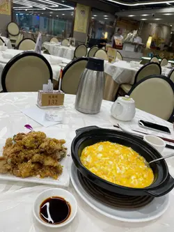 大概大部分人都會認識這幢6層高的建築, 以鮮艷奪目的紅橙色打造傳統中國風外牆的鴻圖樓 😃 以前在附近上班曾試過它的茶餐廳, 才發現原來1樓是酒樓, 今次就來試試看。除左單點之外, 也有不少款式的套餐, 由2人到1圍枱都有, 而這晚我們吃的餐數量是續位計算 😗 最少2位起叫。珍味海鮮宴 原價$288 現在優惠價 $238燒鵝伴燻蹄辣酒煮海花螺蒜蓉牛油焗大頭🦐原中雞燉翅果皮蒸鮮鮑魚手打魚腐浸脆梳白汁焗海鮮飯椰汁蘆薈糕燒鵝伴燻蹄用燒鵝燻蹄做前菜, 是一個可接受的開始, 燒鵝微微脆, 我認為不錯, 朋友則覺得不夠脆 🙃 燻蹄肉質就相對粗糙。辣酒煮海花螺整盤有廿多隻花螺, 直接嚐那個醬汁是有點辣的, 如果挑螺後直接吃就只是微辣, 不過朋友就覺得很辣, 所以只吃了一隻! 🙄 結果我吃了餘下的廿多隻 😶 海螺口感很爽脆, 不停咀嚼很有快感! 😂蒜蓉牛油焗大頭蝦果皮蒸鮮鮑魚大頭蝦蠻大隻, 而且很彈牙, 雖然外殼包圍, 但蒜蓉牛油的味都能浸入蝦裡面 ☺️ 鮑魚煮得有點久, 而且味道略淡, 跟大蝦截然不同, 幸好加了果皮在鮑魚上有吊味作用。原盅雞燉翅先不談它的翅仔, 湯頭非常甜, 用雞和豬肉燉出了多時製成, 並非味精湯 😍 這個餐很便宜都不會預期它的翅有多出色 🙂白汁焗海鮮飯通常最後這些飯都是隨便煮出來的, 在我跟朋友完全亳無期望之下竟然有驚喜 🤩 白汁非常濃稠, 飯用蛋炒底, 做到粒粒分明, 朋友明明聲稱飽肚還能吃了幾碗就知它的吸引力!…查看更多