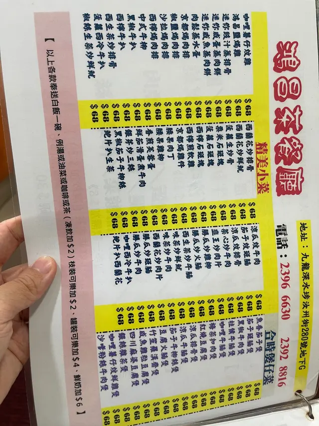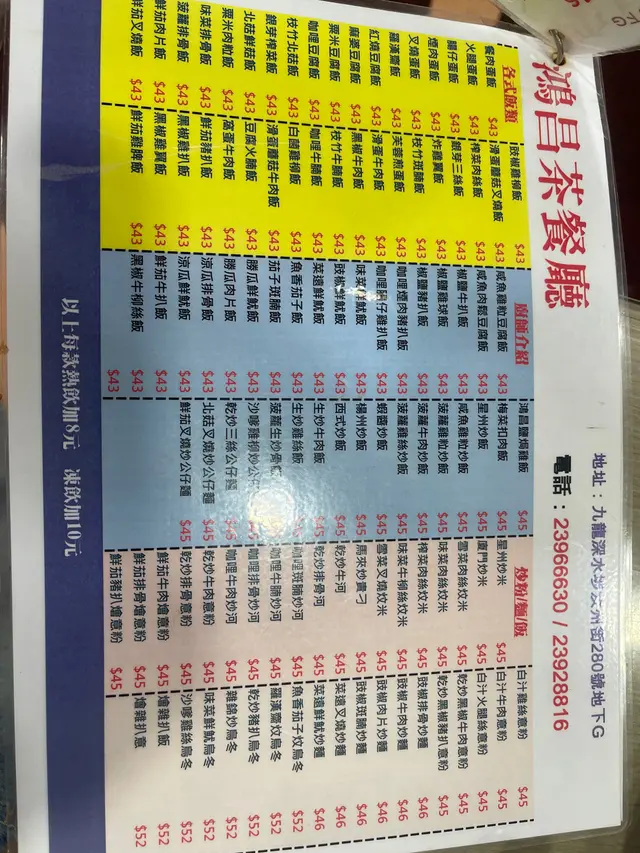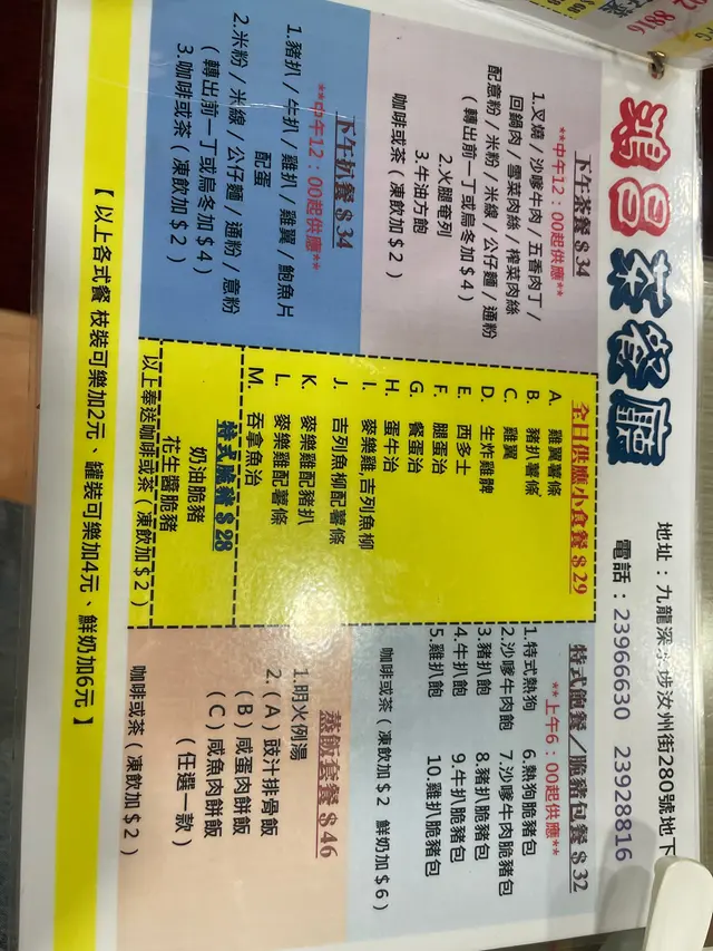 鴻昌茶餐廳 (深水埗) 網址: https://s.openrice.com/QrbS0ygs000 地址: 香港深水埗汝州街280號地下G號舖 電話: +852 23966630