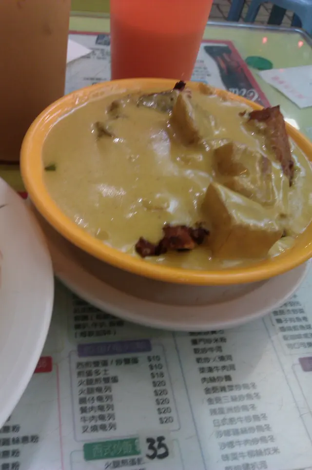 今日過到嚟深水埗同朋友茶聚,朋友介紹嚟呢一間鴻昌茶餐廳,我同朋友二話不說叫杯凍奶茶先,一杯小甜,一杯走甜,兩杯都咁出色好有茶味,朋友叫個雞尾豬仔包,下午茶份量啱啱好,雞尾餡同豬仔包出奇地好配合,我就嗌返個地道常餐,肉丁出前一丁,火腿奄列麵包,不過不失,朋友話呢度嘅咖哩汁好正,可惜今日係下午茶冇咁大胃口食碟頭飯,如果下次嚟一定會試下佢嘅碟頭飯,例湯都係代表作,可以喺深水埗屹立多年,當然有佢嘅強項啦