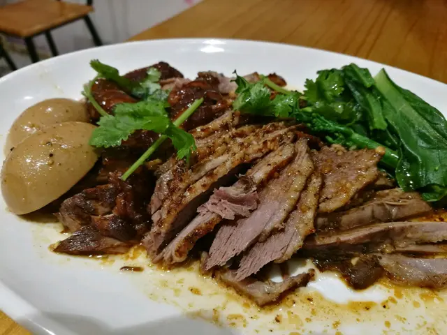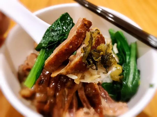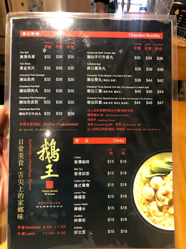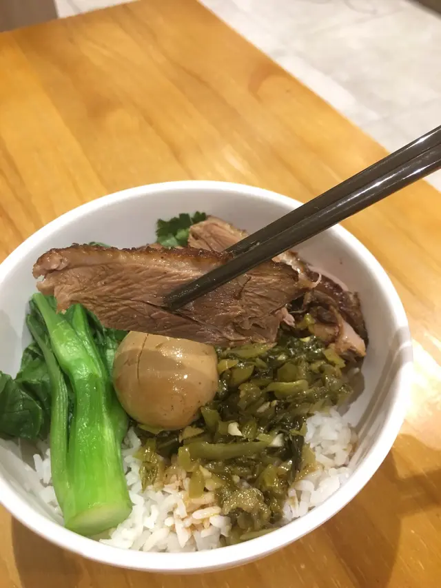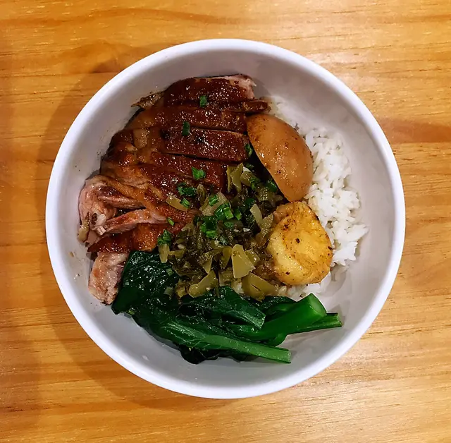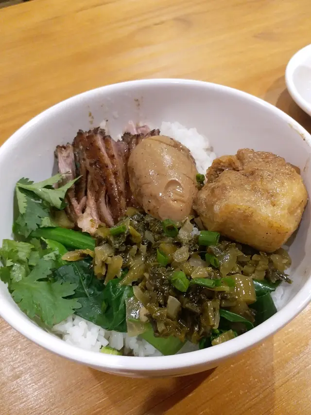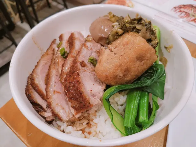 Despite its looks, this shop actually cooks up a decent bowl of goose rice.The flavors here are exotic, and homey. Goose meat is lean, balanced-ly marinated, and juicy. Pairing with a half egg, pickled vegetables, tofu and normal vegetables, this dish is a delectable lunch hour top up.That said, I would avoid the soup noodles, which was surprising to me as the goose rice is way ahead in comparison. Would recommend the shop to revise their supply for the balls in the noodles, or completely scrape it. It might give a false bad impression on the great side of the menu - goose rice sets…查看更多