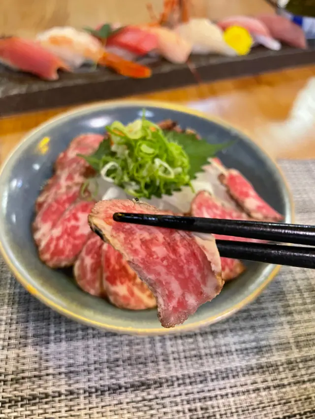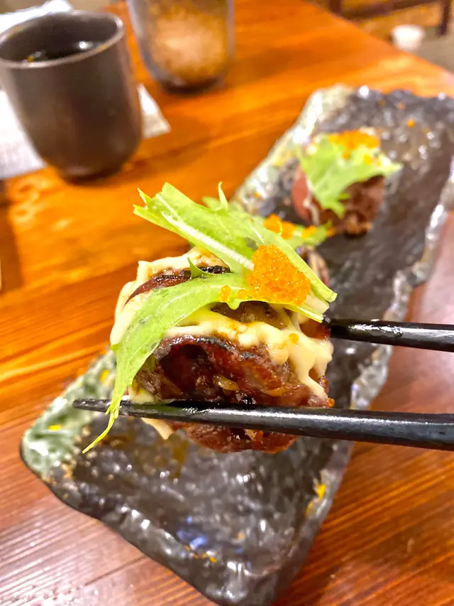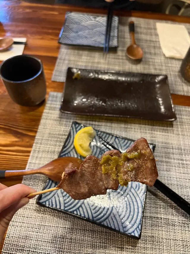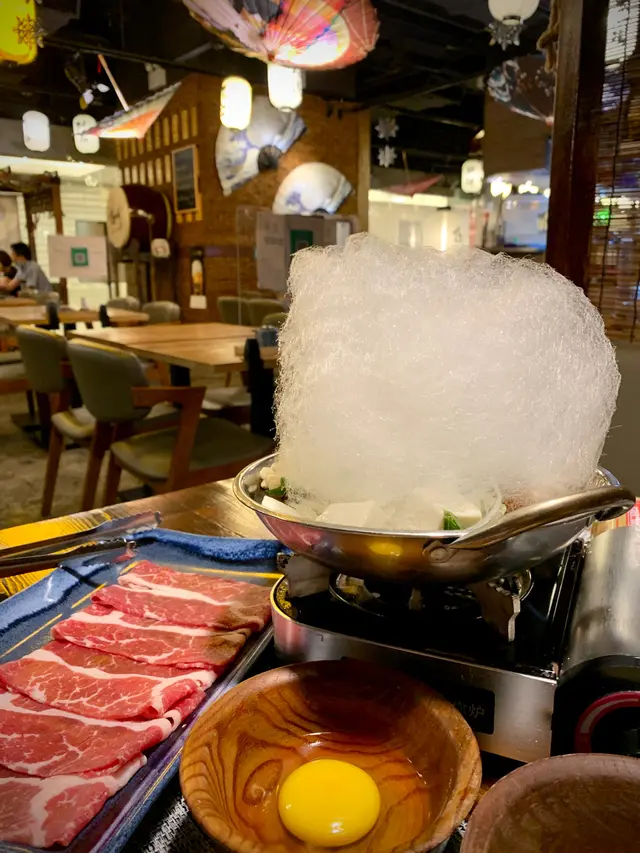 朋友喺觀塘返工,想happy. friday靜靜哋食個飯傾計,一入到去已經feel到舖頭濃濃唧嘅日本氣氛。傳統嘅日式裝修搞到真係好似身處日本咁〜 今次嗌咗….牛舌燒得好香,厚薄適中。口感爽口〜食落牛味重,淨係嗌咗一串唔夠喉呀〜☁️雲糖壽喜鍋(安格斯牛小排)我見差唔多人人都會點呢個壽喜鍋,有棉花糖喺鍋上面,好似嚿雲咁,打卡一流。啲棉花溶化咗喺湯底,令湯底更甜👍🏻鍋嘅配料好豐富,蔬菜,香菇,豆腐等等。安格斯牛小排顏色靚,油花分佈都幾平均,食落好程香牛味配埋隻生蛋點牛肉食,好夾〜南蠻炸雞籃新鮮炸起熱辣辣!口感juicy嫩滑,略嫌炸粉厚咗dd,但值得一試。順帶一提呢度個前菜幾好食,好似係wasabi魷魚(?)我唔鐘意食生嘢都覺得好食,幾開胃!…查看更多
