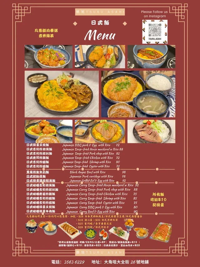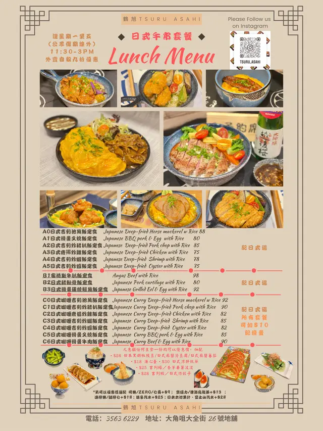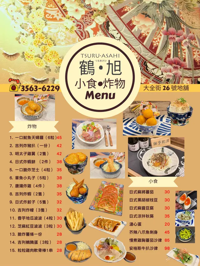 鶴旭 (大角咀) 網址: https://s.openrice.com/QrbS0CzO500 地址: 香港大角咀大全街26號地舖 電話: +852 35636229