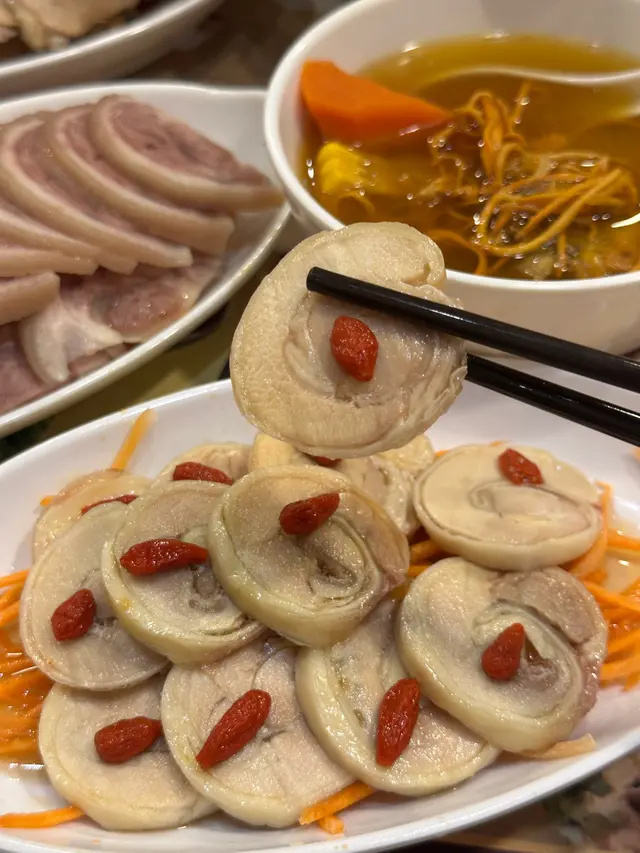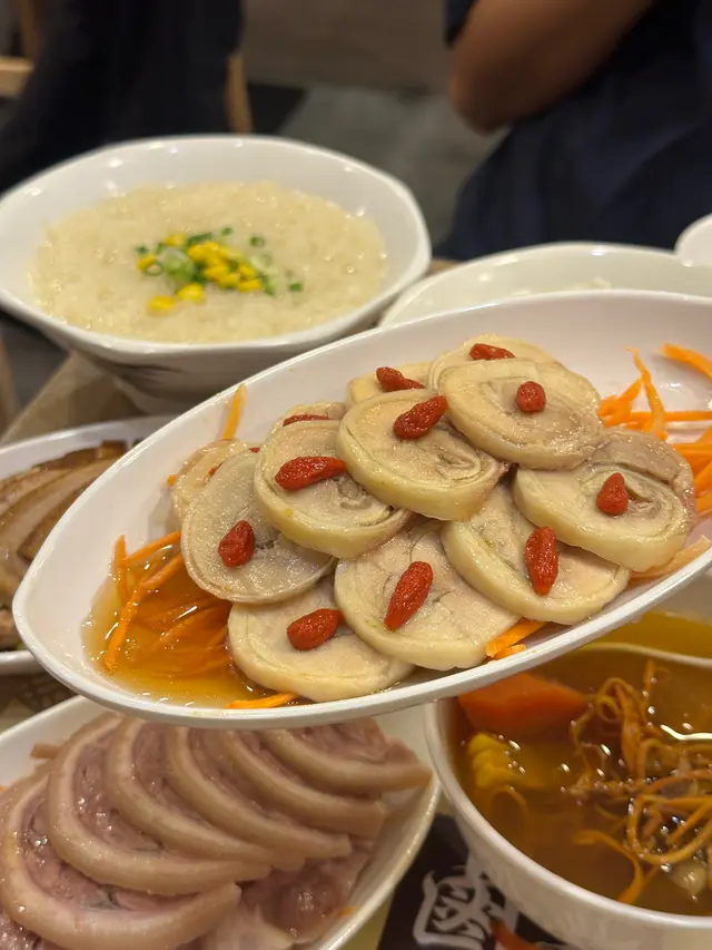 夜晚時分,想堂食燒味除了去茶樓仲可以去小店食!細細間人情咪與燒味都好足!醉鴨舌($62)鴨舌Q彈多肉,裹著仲有海蜇絲,酒香聞起來濃郁卻不刺鼻,絕配啤酒或單獨當小食。加$18 就可以升級變成套餐,又包餐飲又有飯!酒仙醉雞卷($62)食落冇淡淡的酒香濃郁、肉質嫩滑彈牙,並配上杞子一粒,不僅提升養生價值,還能增添風味層次!杞子帶來天然甜味,可以中和酒的濃烈,令到雞肉的味道提升了!金牌燒鵝皇($94)鵝皮爽脆,肉嫩滑入味,鹵水不重口卻層次分明——八角的溫潤、薑片的清新,一點不油膩。底下鋪滿青瓜絲,吸飽汁水,變成爽脆配菜。鴨腿部分多肉,咬下去汁水四溢,配白飯能吃光一整盤。住家老火湯蘋果雪梨南北杏零耳紅蘿蔔豬滑湯,無味精老火湯,喝出家的溫暖!套餐如果唔想飲餐飲可以轉老火湯!仲要唔洗加錢,真係$0的驚喜,讓整餐升級成「養生宴」。📍地址 :鹵家 (元朗)元朗教育路68號兆豐樓地下10及14號舖…查看更多