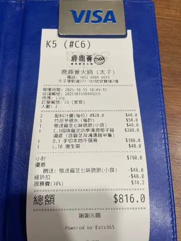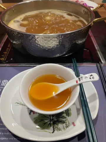 見到呢間火鍋有做靈芝火鍋, 認為比較幾新穎, 於是入黎試下~老闆聲稱自己係70歲,而且基本上一星期都食5日靈芝左右無論打邊爐/煲湯,都會落靈芝粉所以今次我哋打邊爐都唔例外,要試吓佢地招牌靈芝火鍋🍲!先黎一杯🥃cocktail茅台酒加入左少少靈芝, 喝下去無咁傷身 / 宿醉而且有微微的荔枝、玫瑰味, 所以喝下去很清甜, 非常易入口~再送一份餐前小食: 靈芝七味脆脆小食,表面放上靈芝粉,再帶微微辣味,尤其開胃另外再order左一壺靈芝茶:有沉香,更有減肥功效,喝下去苦而不澀~鹿鼎五色海鮮·靈芝養生鍋套餐招牌靈芝四季清潤椰子湯底店員建議可以飲湯先,尤其清甜,之後再放海鮮入去烹調~蟶子皇(涮煮20-25秒)可以不用蘸任何醬汁,吃下去非常彈牙,尤其新鮮~台山蠔(涮煮4-5分鐘)漲卜卜超級肥美,鮮味十足,而且不會有任何腥臭味~鮮鮑魚(涮煮20-25秒)鮑魚切成一片片,煮一陣仔就可以享用,口感無庸置疑係好彈牙啦~大花甲(涮煮20-25秒)無任何沙粒,吃下去好淡淡肉好新鮮,餐廳選擇的海鮮食材絕對係高要求~吃到一半,店員會中途放靈芝粉,會減少「嘌呤」店員亦送了2包靈芝粉,無論之後熬湯/在家打邊爐,都可以放入去一齊煮架~手工韭菜餃子🥟好豐富的韭菜餡料,餃子皮亦唔會太厚,放入口size剛剛好~手工鮮丸 (雲吞,蝦丸,墨魚丸)雲吞餡料都好豐富,有原粒蝦 & 豬肉,皮薄餡靚~蝦丸 & 墨魚丸絕對手打製造,口感彈牙靈芝蟹籽墨魚滑墨魚滑彈牙,配上粒粒蟹籽一起吃,有粒粒漲爆口感~而且配上靈芝,感覺無咁肥膩~田園蔬菜前面食咁豐富,當然要食返D蔬菜中和一下口腔肥膩感~個人比較推薦食淮山,真係好清甜~日本芋絲份量非常充足! 口感爽脆~藍莓🫐芝士奶凍 配 靈芝醬酒餐廳奉送的甜品,放上醬酒一起吃,一開始會以為好難入口,酒精太濃烈估唔到配上奶凍一起吃,可以balance返~而且好match!!…查看更多