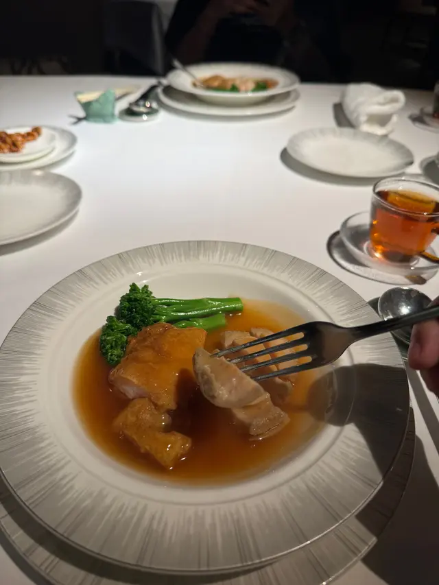香港麗晶酒店翻新後重開以來話題不斷,不僅獲《Travel + Leisure》選為「亞洲最佳城市酒店」,其米芝蓮二星中菜廳「麗晶軒」更成為不少人慶祝特別日子的熱門選擇。適逢周年紀念,我們提前預訂了窗邊位,有兩款套裝可選, 由於散叫的菜式考慮到份量問題等, 於是便試了$1688/位的「麗晶軒盛讌滋味晚宴」,連同茶錢及加一,最終消費$3823.6。整體而言,環境、服務均屬頂級,食物水準穩定但驚喜不多,適合重氣氛與儀式感的場合,但若純為追求創新菜式或許會略感失望。🌃 環境:還記得幾年前洲際酒店(現名麗晶酒店)裝修期間,當時的欣圖軒(現名「麗晶軒」)入口封閉,需要從K11商場進入。這次重訪,發現商場入口已不再開放,客人必須從酒店主入口進入。翻新後的酒店大堂確實貴麗堂皇,一走進去就能看到兩間餐廳,180度的尖沙咀海景立即映入眼簾,當下就與同伴說下次一定要來大堂餐廳用餐,環境實在太chill、太有氣氛了。沿著樓梯下一層,便是麗晶軒。門口有侍應接待,隨後經過一條頗長的走廊,營造出獨特的氛圍——帶著幾分神秘感,彷彿即將進入一個專屬的私密空間,讓人對接下來的用餐體驗充滿期待。進入餐廳,尖沙咀海傍的夜景盡收眼底。我們在傍晚6點入座,那時天色尚亮,維港景致清晰明亮;到了晚上7點,夜幕低垂,燈火漸亮,又是另一番迷人景致。麗晶軒的設計以「玉石珠寶盒」為概念,室內運用大量翡翠色調與玉飾元素,搭配柔和燈光與典雅花藝,營造出低調奢華的氛圍。餐廳空間寬敞,桌距安排得宜,每張枱均能飽覽維港夜景,私隱度十足。不過燈光偏暗,雖增添浪漫情調,但手機拍照確實較難捕捉食物細節。落地玻璃窗外維港夜景與室內設計相映成趣,整體氣派非凡,符合五星級酒店與米芝蓮二星餐廳的定位。💁🏻♂️ 服務:服務無可挑剔,從入座到用餐結束,員工態度殷勤周到,換碟、添茶均及時細心。得知是周年慶祝後,餐廳不僅送上即影即有照片(連相框及員工簽名卡),更額外準備朱古力蛋糕及甜品架,儀式感滿分。這種細緻的服務體驗,確實令人有賓至如歸的感覺。🍽️ 食物詳評:▪️ 麗晶四小碟黑魚子煙燻蛋、上湯蟹肉凍、陳皮欖角脆鱔、蝦籽花枝脆鮑魚卷。一般而言,前菜多為酸甜開胃、點到即止的小品,但這裡卻罕見地安排了兩款炸物,設計上已顯厚重。實際品嚐下,脆鱔和鮑魚卷粉漿偏厚,口感油膩,蓋過了食材原味;蟹肉凍味道過淡,黑魚子煙燻蛋則中規中矩,無突出記憶點。整體而言,這道四小碟在味道平衡與食材搭配上都有改善空間。▪️ 珍珠貝燉雞樅菌 👍全晚最驚喜的一道!湯色清澈卻鮮味濃郁,珍珠貝肉厚帶甜,雞樅菌香氣突出,燉湯火候足,不油不膩,溫潤順喉。▪️ 蟹皇白玉蒸龍蝦球龍蝦肉質爽彈,但整道菜整體味道偏淡。底層蒸蛋白口感嫩滑,卻同樣味道寡淡,未能為整體風味提供有效支撐。蟹皇醬汁無論在香氣或濃度上都顯得單薄,未能有效融合龍蝦與豆腐的風味,三者之間缺乏味道上的互補與遞進。整道菜在口感上雖有層次,但味道平淡單一,屬於水準平穩但未達驚喜之作。整體而言算是平穩之作,但缺乏令人回味之處,屬於試過便足夠的菜式。▪️ 焗釀大響螺 👍在這次套餐中多為較為傳統的菜式之際,這道焗釀大響螺確實帶來了新鮮感。釀料豐富(豬肉、雞肝、蘑菇等),醬汁帶點葡汁風格,濃郁惹味卻不腥,螺肉彈牙爽口。整體味道搭配得宜,跳脫了傳統中菜的框架,為晚宴增添了不少亮點。▪️ 松茸鹿兒島和牛雅枝竹伴脆饅頭和牛肉質柔嫩,松茸香氣含蓄,但伴菜搭配稍顯突兀;脆饅頭實際偏軟,未能與主菜風味融合,略有落差。▪️ 熟蝦醬海鮮炒飯 👍炒飯乾身香口,蝦醬鹹香調得恰到好處,似XO醬但減去辣味,搭配蟹肉、帶子、石斑等海鮮,料足味美。▪️ 甜品香芒凍布甸與荔枝雪葩清新不過甜,荔蓉芝麻卷香軟細膩。因慶祝額外贈送的甜品架與朱古力蛋糕,視覺效果十足,但味道與原本甜品相近,略嫌重複。———✅ 加分位:環境、服務均屬頂級,維港夜景搭配典雅裝潢,氣氛浪漫適合慶祝。員工主動為紀念日安排驚喜小禮,細節用心。燉湯與炒飯水準突出,食材品質穩定。從酒店大堂到餐廳走廊的整體動線設計,營造出獨特的儀式感和期待感。可惜位:菜式設計偏保守,部分前菜與主菜搭配缺乏新意,炸物處理可更細膩。以人均近$2000的價位,期望更多創意與記憶點。總結:麗晶軒適合追求環境、服務與儀式感的食客,維港夜景與米芝蓮二星光環確實加分,但若以食物創新度而言,性價比略遜。短期內未必會再訪,但會推薦給重視慶祝氛圍的朋友。倒是酒店大堂的景觀餐廳令人印象深刻,值得下次專程到訪。人均:晚市套餐$1688起/位,另加一及茶錢…查看更多
