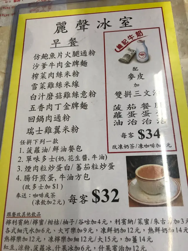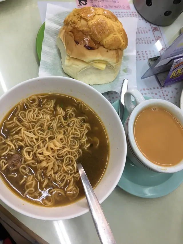 平日趕頭趕命的返工,放假就想好好地嘆個港式早餐。比起all day breakfast,更多時候我會選擇茶記既經典火腿通太陽蛋凍奶茶😌之前留意到麗聲的早餐可以揀菠蘿油,覺得好抵就bookmark,搵日去食。入到去,一睇就知開左好多年,懷舊感滿滿,不是那種新餐廳噁心的扮懷舊來一份早餐,沙嗲牛金牌麵+菠蘿油+熱奶茶。未聽過金牌麵。上檯一試,好似福麵但又冇福麵的咁脹咁冧,好好食,食到尾都keep到冇發脹,麵條較幼,我最憎食麵一路食佢一路脹,搞到我好似同佢鬥快咁食,所以我好like個金牌麵。金嗲牛就正常。因為麵先上加怕個麵發脹,所以一直擱置佢。食完麵先食菠蘿油,菠蘿包不是剛出爐,皮冧,但塊牛油仲凍又唔硬身,牛油好,整體味道叫正常,跟餐唔洗加錢有菠蘿油你食,你仲要求d咩?!一個字,好抵食吖熱奶茶,都係正常,茶味濃👍食物正常,係個金牌麵特別好食,係食左咁多茶記最好食一間,仲有包菠蘿油,都係$32,抵食。有下次比好評同五星既原因係麵好食同抵食😊…查看更多