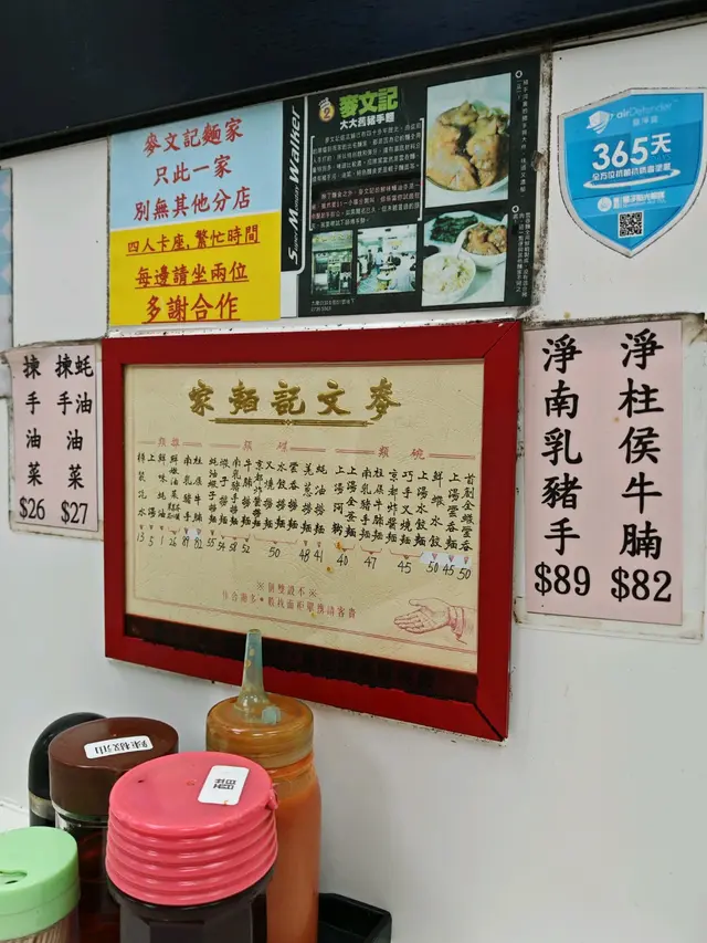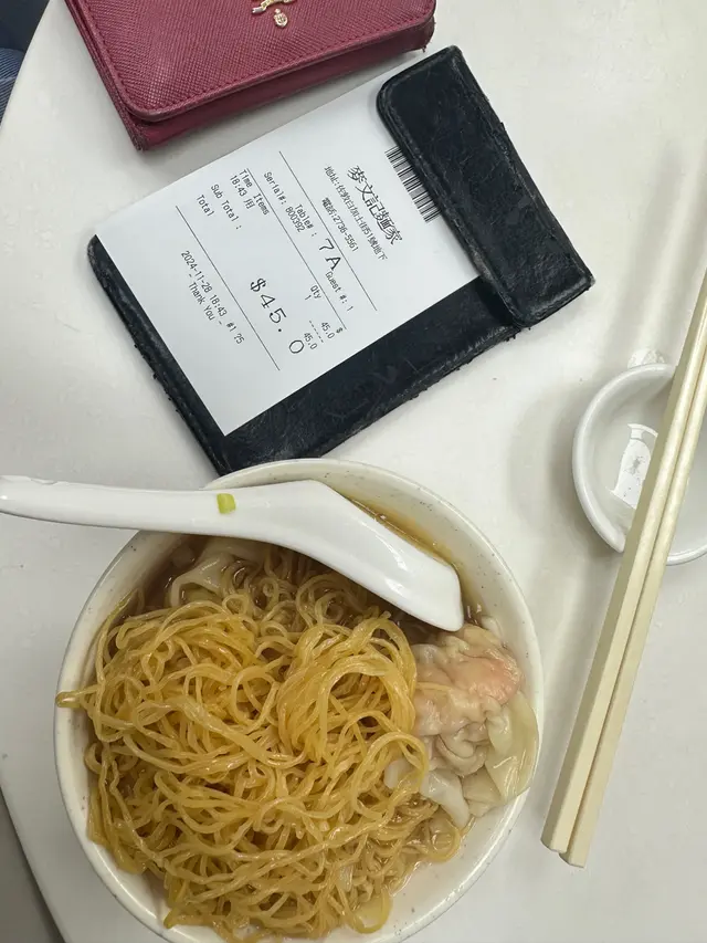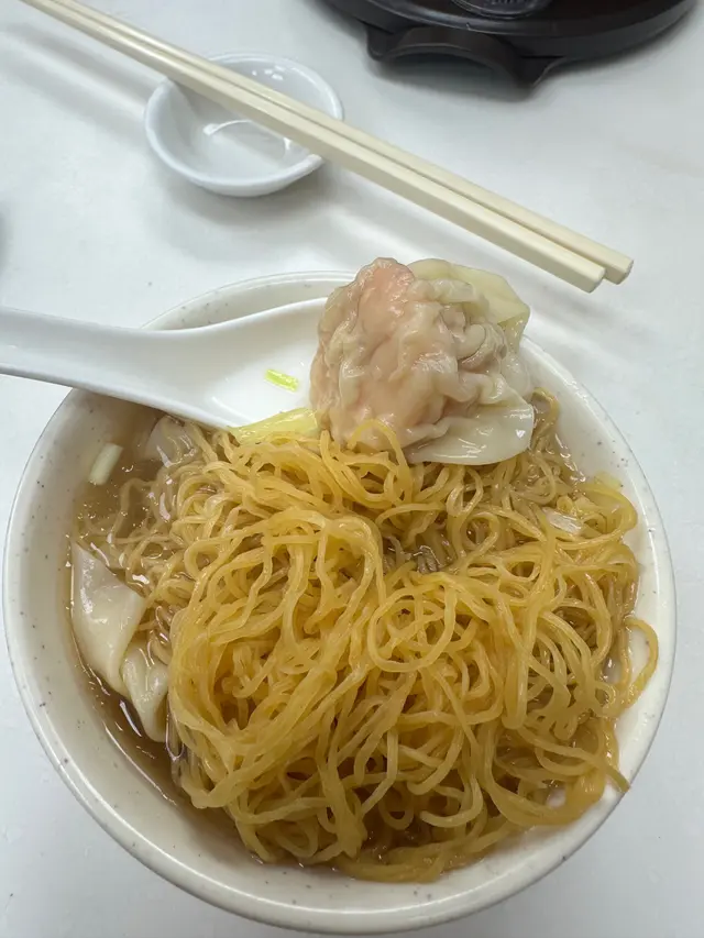 香港人好钟意食面,港式云吞面和各式各样的日本拉面人气爆棚。麦字辈的云吞,也是遍布全港。麥文記麵家从庙街的街边档起家,已经开店超过七十年了。🪴环境:店在澳州牛奶公司的隔壁,门外人流如潮。室内空间紧凑,环境非常干净卫生,桌上的调料瓶摆放有序,店员衣着工装。生意好,人气很旺。🍜云吞面 云吞个大,造型漂亮,如金鱼散尾一般。薄薄的云吞皮包裹着满满的虾肉,一只云吞有两三只整虾。用料足且很有品质,虾肉粒大饱满,极其紧实弹牙,甚至能吃出脆感。细品,发现云吞馅儿里还加有大地鱼粉。香油气息不重,好吃不腻。诚意非常足,惊艳到我。竹升面加了鸭蛋和碱水,颜色鲜黄,口感爽弹,又绝对不会像橡筋一样。韭黄切得比较短,我相对喜欢细长条口感的。一碗面四颗云吞,芙蓉如面柳如眉,地道销魂细蓉。🥬鲜嫩油菜 有菜心、菜花、芥蓝可选。芥蓝精选过,挑的最幼嫩的部分,连梗部吃着都嫩。淋了烧肉汁,真正做到了油香细嫩。油菜是油菜,不像很多店的白灼菜,有味不单调。一碟普通油菜,感受到了店家对食材的要求和对美食的执着👍碗小料足,满满一碗,也就没能好好感受汤底,下次会来吃捞面,好好感受那一碗大地鱼汤。对南乳猪手和瑶柱牛肉捞面、韭菜花都很感兴趣。🛎️服务:一个值得称赞的细节,落座会端上一个白色小碟当味碟。很多人吃云吞面有搭配大红浙醋中和竹升面碱水味的习惯。这种细节,在绝大多数面馆已经看不到了。坚守品质,保留着传统,也在与时俱进,第一次在香港老店看见店员用电子设备下单,也可电子支付。📍香港特别行政区佐敦油尖旺区白加士街51号。…查看更多