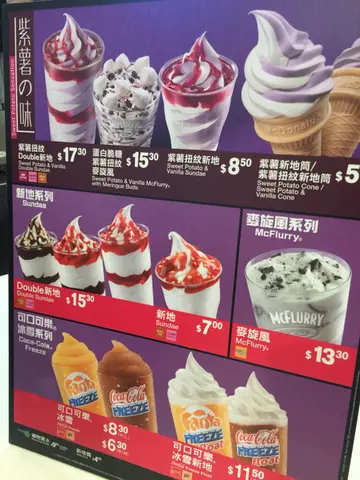 巨無霸 / 至尊漢堡 / 麥旋風 / 麥樂雞 / 薯條 / 雙層芝士漢堡