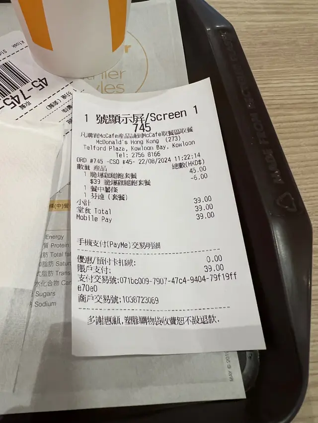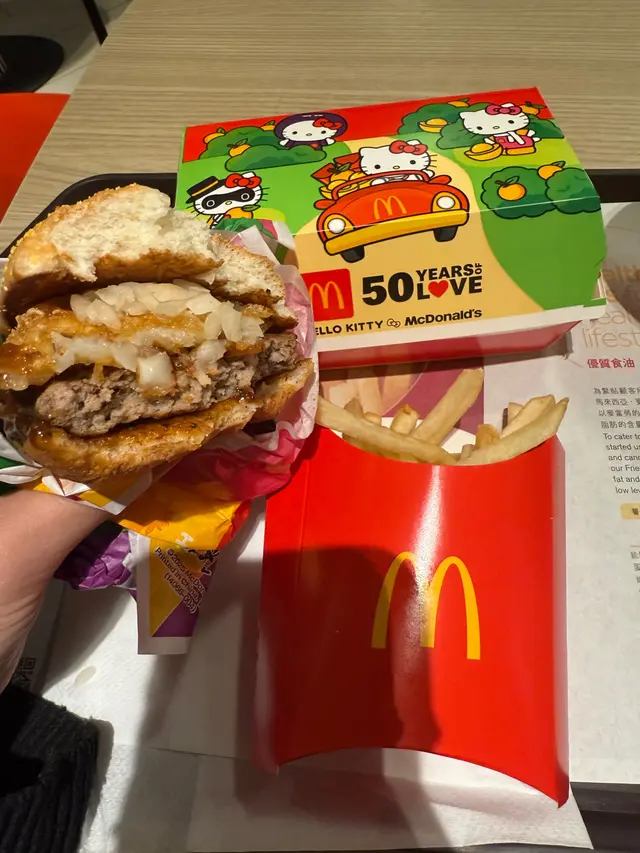 喂喂,打風見M記有開,去咗麥當勞試咗佢哋嘅鋒味系列,先講鋒味安格斯煎蛋肉醬飽🍔,呢個飽真係勁!安格斯牛肉厚實多汁,配埋煎蛋同肉醬,咬落去層層口感,咸香帶甜,唔會太油膩,食完仲想encore!不過如果牛肉再厚啲就完美喇。跟住係港式燒味風味調味粉薯條🍟,哇,呢個薯條加咗燒味粉,味道好似綠色包裝嘅薯圈,邊食邊回味香港零食。但係有時粉灑得唔夠均勻,邊位可能淡咗少少,建議搖勻先食。最後鋒味橙汁雜飲🥤,橙汁混埋雜飲,酸酸甜甜好解渴,配飽薯超match!唔過如果鍾意清新啲嘅,呢個可能甜咗啲,適合夏日消暑。整體嚟講,呢個系列創新又地道,試一試又有驚喜。😉…查看更多