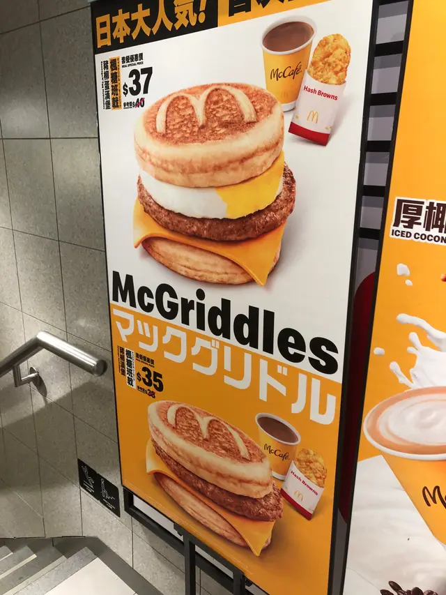 finally grab this lovely mc Griddles indeed soso yummyfirst time they arrive in hk, it suddenly suspended and later no in hk, finally this time grasp one laaa, the taste indeed attractive very well matched with honey, the pancake layers are pretty soft but firm haaaso good having this lovely with crispy yummy hash brown and hot chocolate my all time favorite somuchloveeee loveyayaya good choice for a brunch haha查看更多