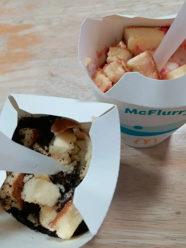 雪糕新地加蛋糕粒 miyako_0209等級42022-01-11251 瀏覽 關注 朱古力蛋糕麥旋風十蚊一杯, 有士多啤梨雪糕味,或者朱古力雪糕味, 每隻味道買咗一杯,返去同屋企人share,個感覺就似係朱古力新地,或者士多啤梨新地, 跟住上面加咗啲蛋糕粒, 跟住再搞一搞畀你, 就係咁。…查看更多以上食評乃用戶個人意見 , 並不代表OpenRice之觀點。讚好分享雪糕新地加蛋糕粒 麥當勞 (將軍澳廣場) https://s.openrice.com/QrbT0zyUGG0檢舉 張貼 評分3味道3環境3服務3衛生3抵食用餐日期2022-01-08等候時間15 分鐘 (外賣自取)人均消費$10 (下午茶)