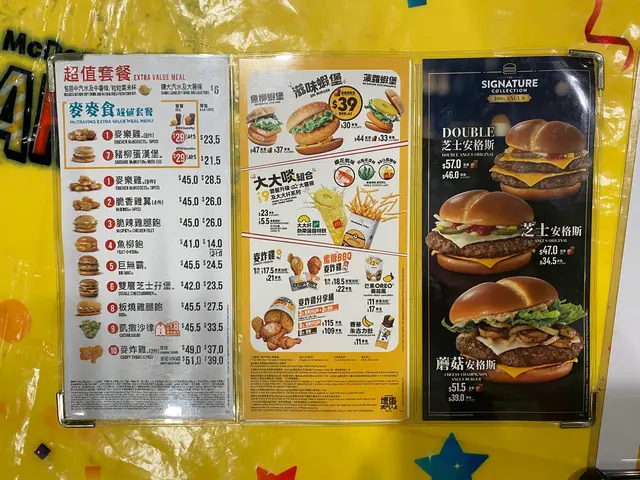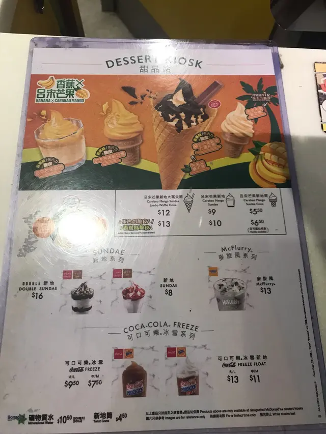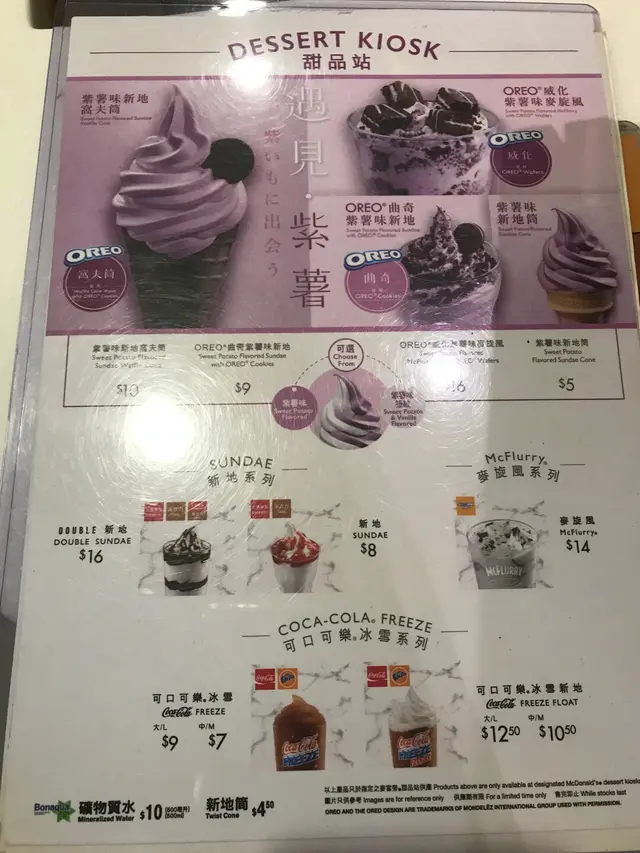 巨無霸 / 至尊漢堡 / 麥旋風 / 麥樂雞 / 薯條 / 雙層芝士漢堡