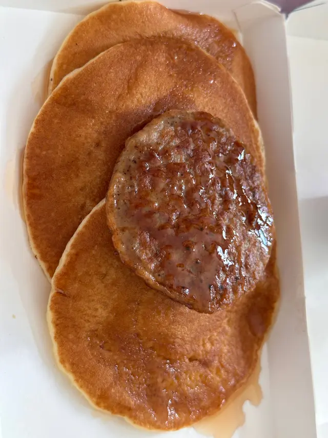 早餐揀咗「熱香餅精選套餐」,加埋薯餅、Nestle藍莓乳酪同熱朱古力,一次過齊晒甜同鹹。 熱香餅三塊疊高,外層微焦,口感鬆軟帶少少煙韌,淋上楓糖漿之後即刻多咗層甜香,配牛油更滑口。薯餅就典型麥記水準,外皮脆卜卜,裡面馬鈴薯蓉軟綿,咸香油脂感正好中和香餅嘅甜膩。 乳酪係個清新驚喜,入口涼爽,藍莓果粒酸甜突出,令餐點唔只得heavy口味,仲有層輕盈收口。至於熱朱古力,甜度偏高,但香濃幼滑,早餐時飲落幾舒服,特別適合想要暖一暖胃嘅人。 成份早餐組合算係平衡,小小甜膩、少少炸香,再加埋乳酪同暖飲作對比,感覺飽足但唔至於太膩。雖然係快餐,但食落竟然帶嚟一份簡單滿足,啱晒趕時間又想有少少安慰感嘅早晨。…查看更多