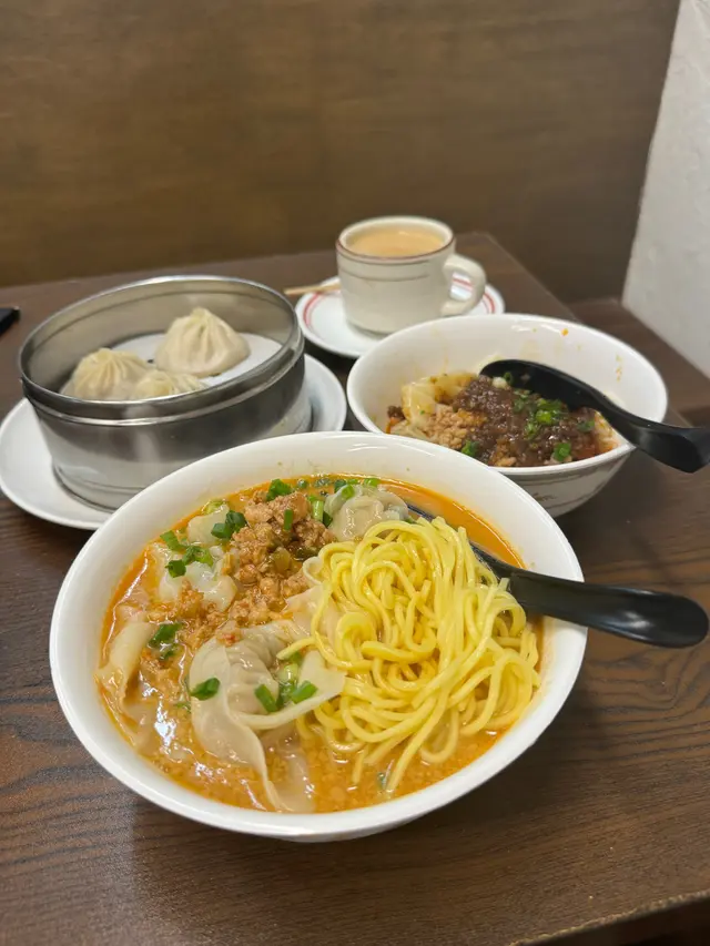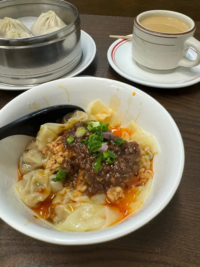 聞名已久,今日專誠幫趁⋯⋯到達時即早上11點左右,店內已經很多人客,一個人容易等到位… 不過,店小而地方比較淺窄,枱與枱之間很貼近…而待應…. 板口板面的…可能太忙啊!點叫了…窩貼present 得並不吸引,有點隨意,但皮脆肉香,不油膩,有口感!豆漿也很不錯!下次要試水吧的凍奶茶或凍鴛鴦!菜肉雲吞擔擔麵,色、香、味、俱佳,上枱時,見到已經想即刻食,令人垂涎三尺,麵條彈牙,擔擔麵湯底香味撲鼻,很濃郁,不過咸,菜肉雲吞,有五隻,皮薄餡靚,菜及肉比例平均,正!意猶未盡,雖然已經飽到上心口,單尾再叫小籠包,外型討好,每啖都有豐富的湯汁,皮滑溜又夠薄,好正吖!真係名不虛傳!下次再來!查看更多