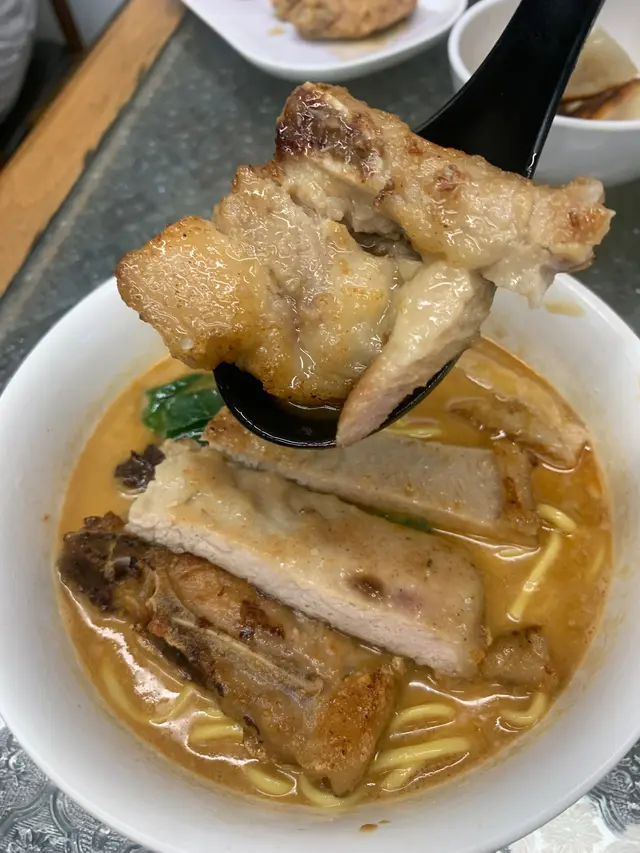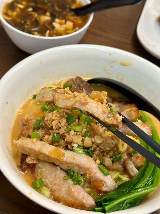 呢間麥記唔係果間麥記北角食肆林立,但位於堡壘街(相對無咁旺)的麥記美食竟然有不少外國人幫襯,心想事必有因!🤔🤔麥記美食店舖不算大,但坐落都舒服,重點係出品質量夠高,而且價錢不太昂貴!🤗🤗🥢豬扒擔擔麵🐖湯底濃郁,因為用麻醬和花生醬+秘汁混合配製,故此口感很豐富好rich.豬扒好似食五花腩咁潤滑,脂肪鬆化,肉質不會又嚡又實,做得好👍!🥢雲吞擔擔麵🍜雞蛋黃麵條軟熟柔潤,啜上口颯爽有聲,雲吞餡料飽滿好大粒,一碗麵足足有五粒雲吞咁多!真係抵食。🥣🥢黃金之選→炸雞翼🐔巧妙之處是隻雞翼咬落有鹹蛋🥚甘香味,因而美其名為黃金,個名好有心思!🥢小籠包一籠四隻,晶瑩剔透,饀肉和清湯都好有水準。👍🥢鍋貼🥟🥟🥟一邊煎到脆卜卜,很吸睛😳而且味道上乘!🥢凍豆漿🥛🥛香港製造鮮味豆漿,不會太甜,冇防腐劑!朋友想知道生煎包的製作過程,可以光顧麥記美食,或者可以俾你偷師成功啊!🍴🥄#麥記美食(北角)#北角堡壘街19號景文樓地下2號舖#生煎包#上海麵#鍋貼查看更多