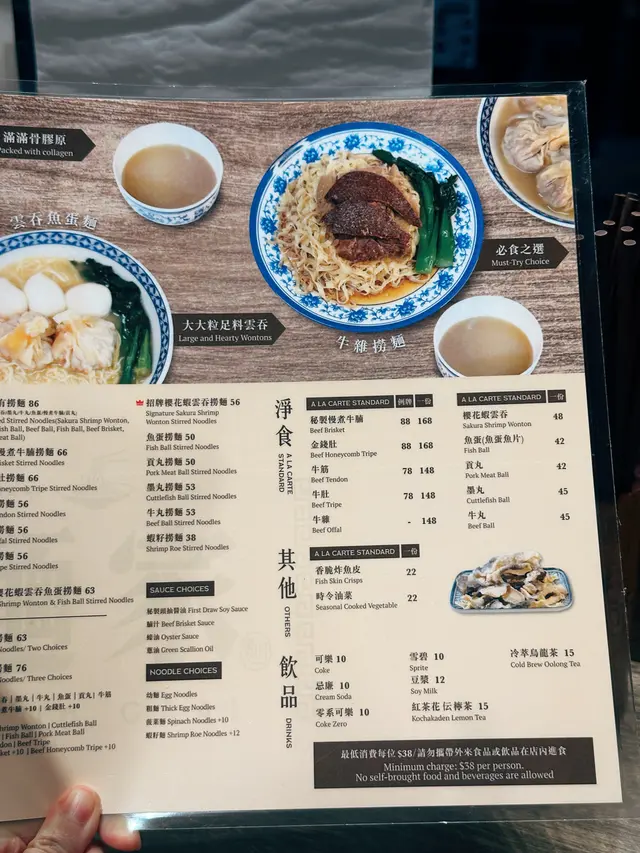 同朋友上完堂,喺銅鑼灣登龍街發現呢間裝修光猛、充滿港式情懷嘅「麵家」。推開門就聞到濃濃大地魚湯香,店面乾淨企理,牆上仲掛住木製餐牌,夠晒復古。原來佢哋堅持用香港老字號麵廠產品,真係間有心小店!🍜 自選配料|樣樣高質朋友叫咗碗「咩都有」($90),齊集牛丸、貢丸、墨魚丸、魚片頭、雲吞同牛腩,配超彈牙蝦子麵。我揀咗三拼($73)轉菜底(加$5),揀咗雲吞、牛肚同墨魚丸:· 墨魚丸:全場MVP!彈牙到似乒乓波,咬開仲有粒粒墨魚肉· 雲吞:每日新鮮包,原隻蝦仁加埋蝦子,大粒到似粒波波金魚· 牛肚:慢煮到超級入味,軟淋得嚟帶嚼勁· 慢煮牛腩:自家炆製,肉質鬆化又唔黐牙,筋膜位最正🥬 抵食菜底|慳錢之選轉菜底真係超抵!加$5就已經有一大碟菜心苗,分量同單叫油菜一樣咁多,嫩綠清甜。我哋兩個人所以額外叫多碟油菜($22),蠔油分開上夠細心,唔會搞到太鹹。🐟 大地魚雞白湯|每日鮮熬50公斤雞殼湯底係精髓!每日用50公斤雞殼加入大地魚熬足8小時,湯色清澈零油感,飲落濃郁鮮甜到黏嘴唇!大地魚嘅鹹香同雞湯嘅醇厚完美融合,完全冇味精感,難怪可以成碗飲晒!真心推薦唔使另點飲品,個湯已經夠晒滿足~🍜 本土情懷|老字號麵條餐廳堅持用香港製造麵條:· 麵餅:超過50年歷史「永樂」老字號,蝦子麵特別香口· 河粉:選用70年「雙喜」品牌,下次可以試下 支持本地品牌之餘,品質更有保證!今餐人均$106,食到高質粉麵同暖心大地魚雞湯,仲支持返本地老字號,絕對會再encore!行開銅鑼灣想食碗靚粉麵,麵家係個唔錯選擇~…查看更多