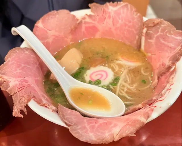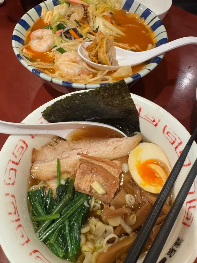 嚟左尖沙咀咁多次都唔知呢間香港第一間拉麵店難得有時間就嚟試下一入去幸福中心已經感受到嗰種懷舊...成個商場得返幾間餐廳開都擔心伏入到餐廳環境算光猛整潔人唔算多 見大家都係悠閒咁食喺餐牌見到個二人餐就試下喺套餐叫左2個拉麵:特製低溫叉燒麵、雞白湯拉麵小食:明太子煎蛋、蔥花牛舌叉燒拉麵湯底幾香濃 但勝在份量十足雞白湯會相對清少少 但就會細碗少少對明太子煎蛋就比較失望純粹係煎完蛋加篤明太子醬小食基本上冇咩驚喜建議嚟都係focus食拉麵不過價錢嚟算係咁 有機會會再嚟試其他嘢…查看更多