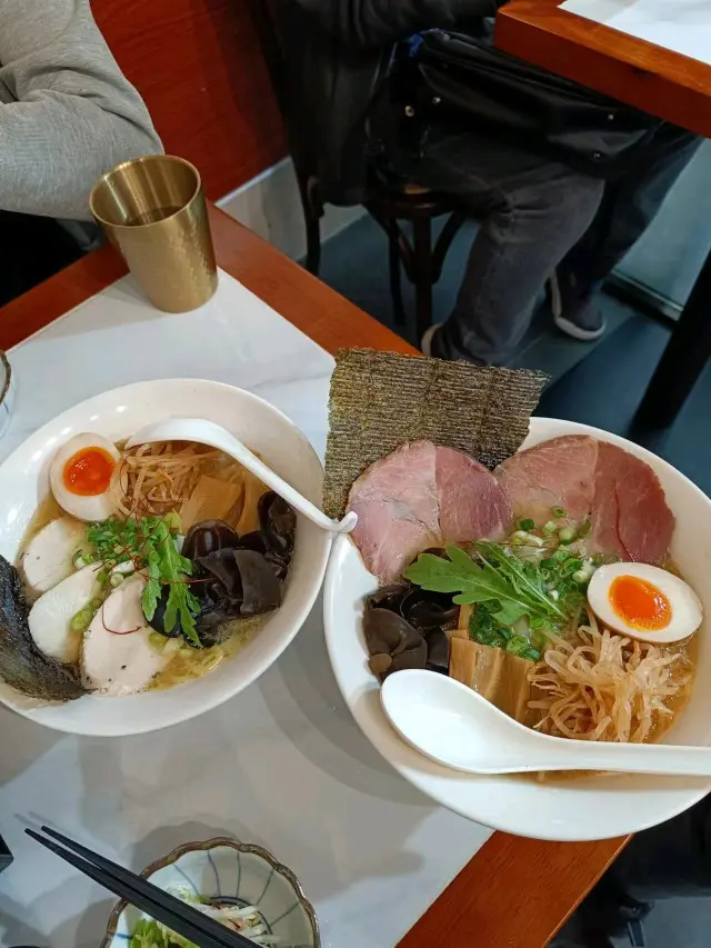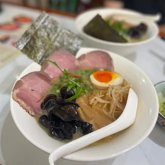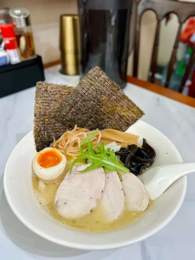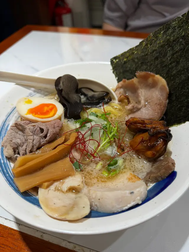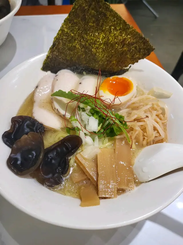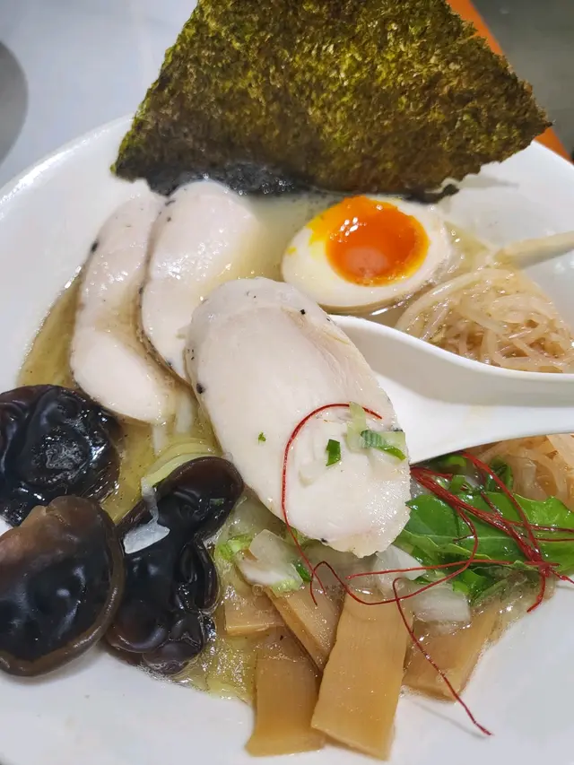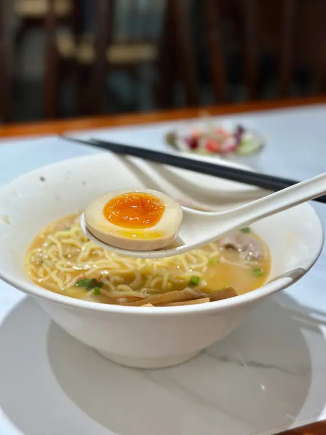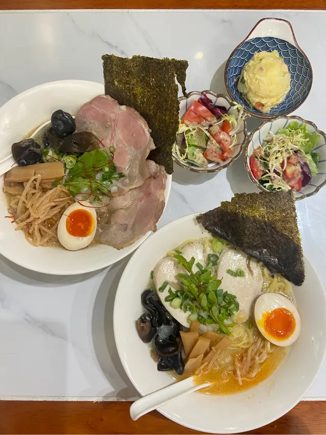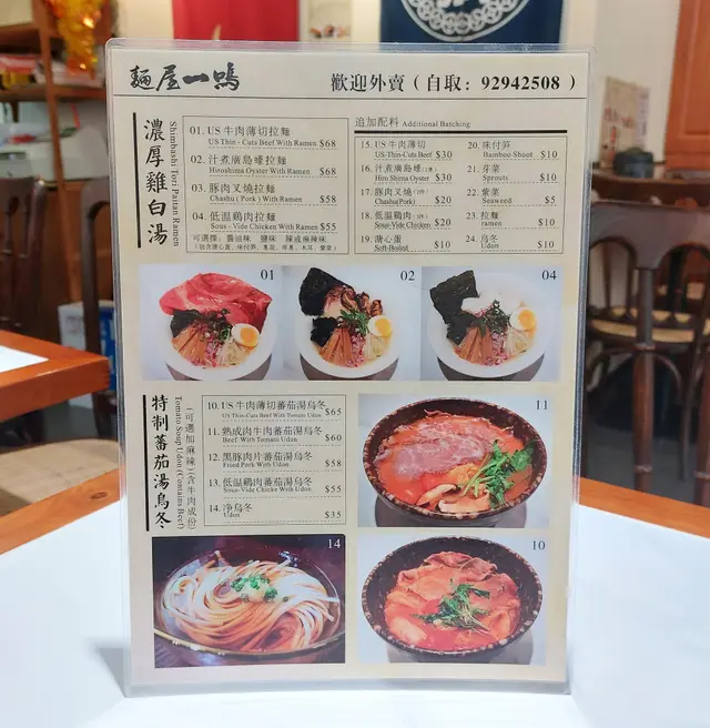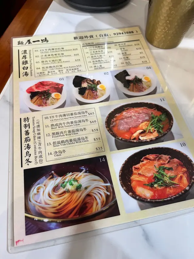 去小學open day前同好朋友食lunch大家都想食烏冬😂就搵咗呢間好似冇乜人介紹過可以自選湯底、配料同麵款每人附送沙律前菜▶️ 低溫慢煮雞肉醬油味雞白湯烏冬 ($58)好豐富嘅配料:雲耳、芽菜、竹筍、洋蔥粒、紫菜仲有半隻半熟蛋同四厚片雞胸肉半熟蛋入味,時間拿捏得好,蛋黃晶瑩剔透🥚略嫌雞胸肉嚡身少少,同埋有啲人工醃製鹹味,似CP一袋10件黑椒即食雞胸嗰隻🫢不過啖啖肉,適合健身人士湯底值得欣賞👍🏻雞白湯呈金黃色,夠濃厚又唔太鹹,齋飲都OK烏冬非讚岐/稻庭烏冬,而係扁身偏易斷,唔彈牙感覺襯唔上個湯底,有啲可惜😢▶️ 慢煮豚肉叉燒特制蕃茄湯烏冬 ($58)蕃茄湯真材實料,飲得出唔係罐頭或落太多茄膏雖然冇濃濃蕃茄鮮甜味,但係健康味道🍅唔錯另外配上娃娃菜、香菇,田園風-湯底做得好好😋精心炮製睇得出有心機做,每碗麵都即叫即制唯獨烏冬選材有啲失色,可能拉麵好啲服務同環境正常,店舖位置較偏僻難搵性價比高,平均$60/拉麵,唔收服務費完全係平民界拉麵之選🍜…查看更多