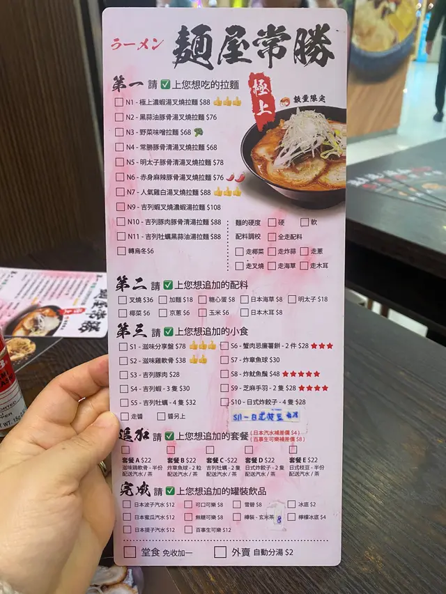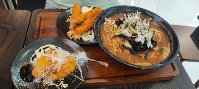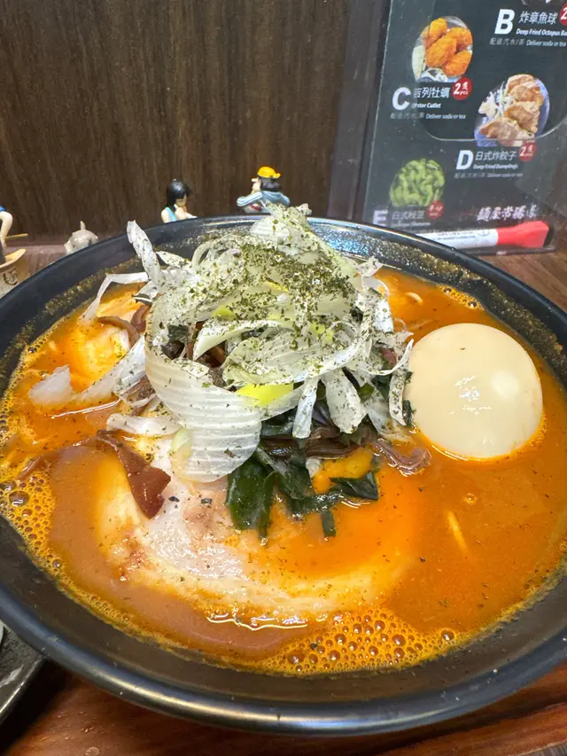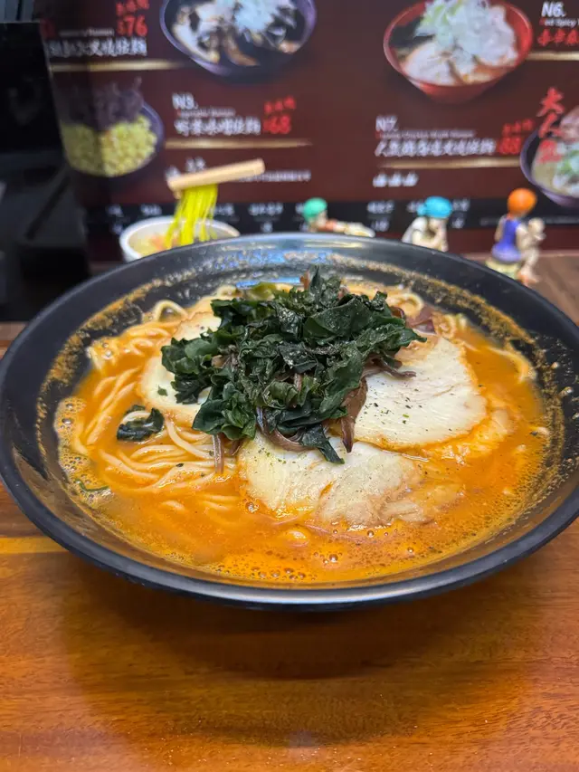 觀塘好多美食,其中酒包括呢間叫做麵屋常勝嘅餐廳,今日叫咗雞肉拉麵,配上糖心蛋同埋紫菜;另外朋友叫咗炸餃子、炸生蠔黑蒜油拉麵,另外加咗炸魷魚鬚同埋雞軟骨個拉麵煮得彈牙可口,而且湯底,特別係黑蒜油湯底味道好濃郁,又唔會過分油膩,而咁多樣炸物包括炸餃子、炸蠔、炸魷魚鬚同炸雞軟骨都份量充足,而且炸得香脆之餘又乾身,好出色呢間餐廳價錢相宜,位於觀塘,係打工仔同朋友聚會甚佳嘅選擇,店內環境非常有特色,動漫迷值得一去。…查看更多
