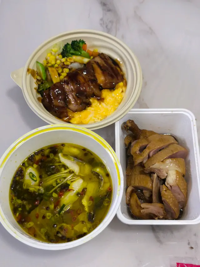做完運動正愁緊食乜好……老細話佢已經叫咗外賣,叫我去自取~嘩!抵到一個點!上去成業街嘅怡生工業大廈攞,地方都算乾淨骨子,佢話響openrice叫定外賣,100蚊有三個飯或者麵?!得唔得㗎?拿拿林攞完就返屋企食啦!金湯酸菜魚配白飯:小辣但係超麻,個湯底唔錯,都有好多配料,魚片夠滑!照燒雞扒滑蛋野菜丼飯:份量足夠,滑蛋好滑,照燒雞扒水準都唔錯,野菜份量都多!🥳今日number one係佢嘅低溫慢煮鹵水鴨:鴨肉有啲爽口彈牙,但係又好淋好入味~超正!!👍🏻😘今時今日100蚊可以有三個主食,仲想點呀?最緊要係味道都唔錯,回頭率超高!IMG:3][IMG:5][IMG:7][IMG:9][IMG:3]…查看更多
