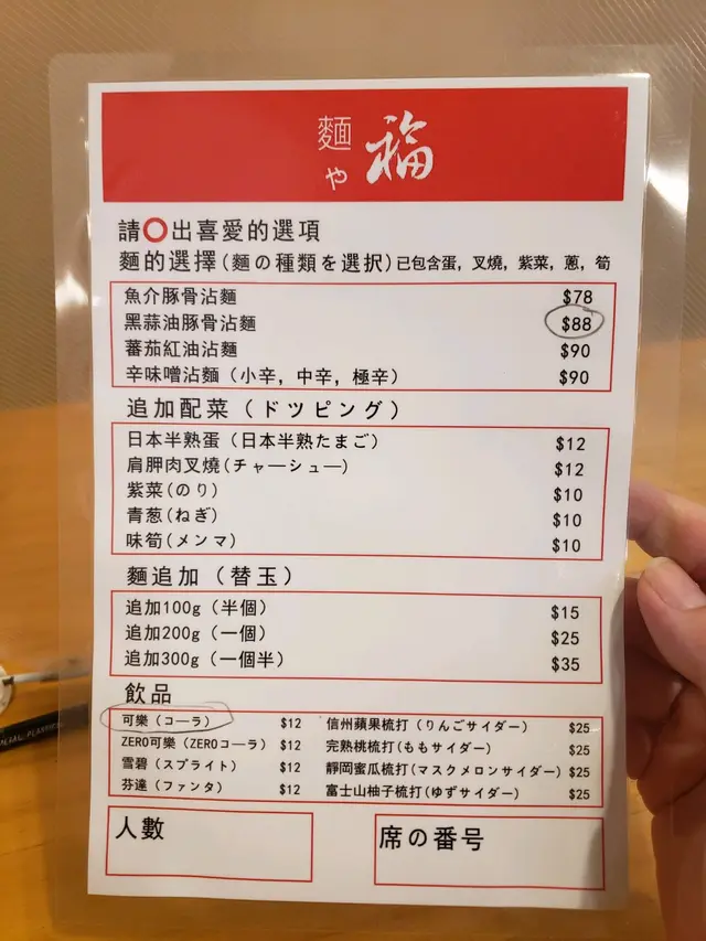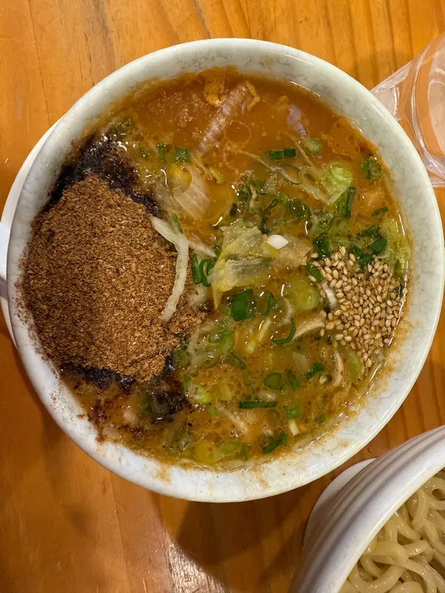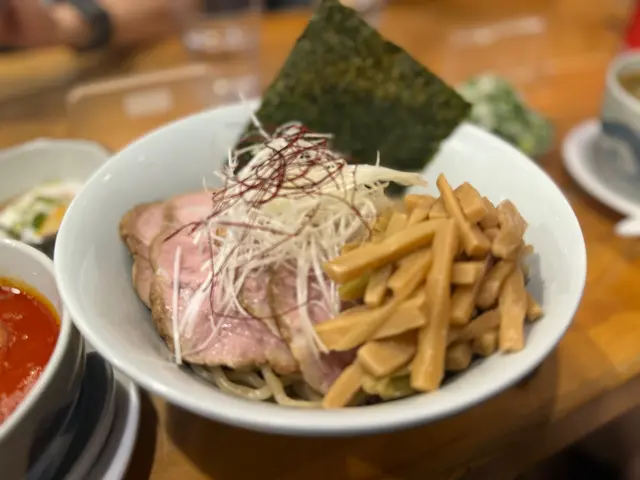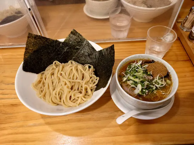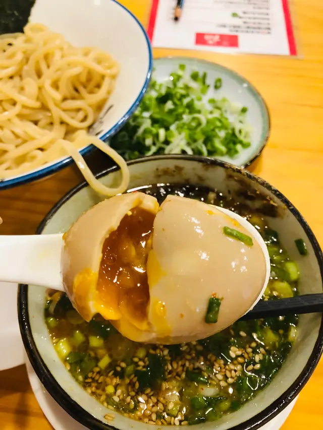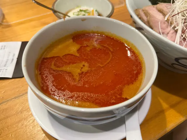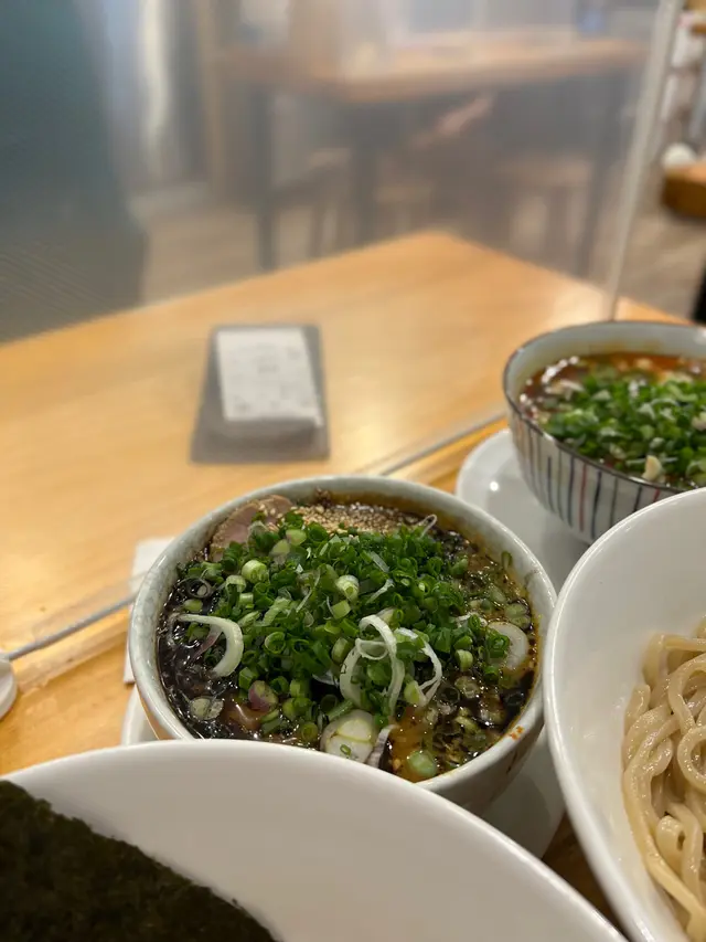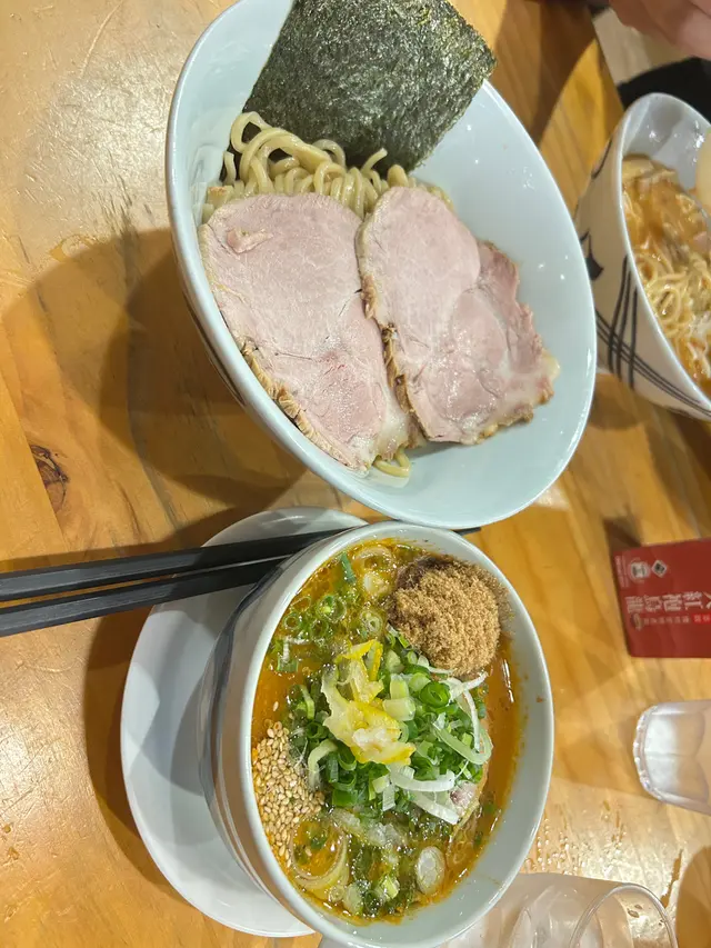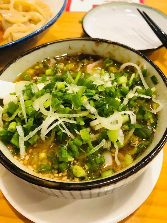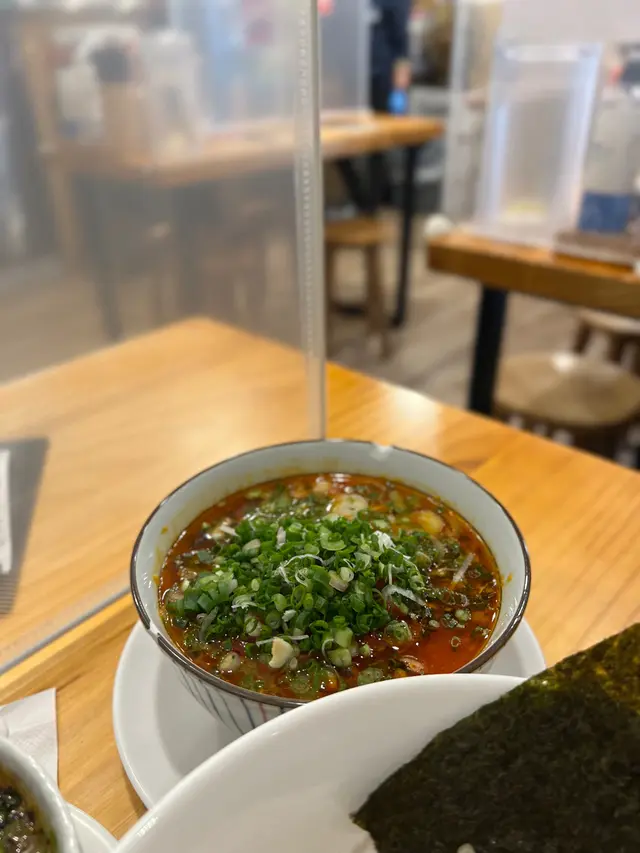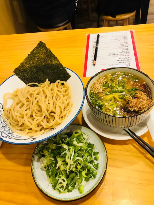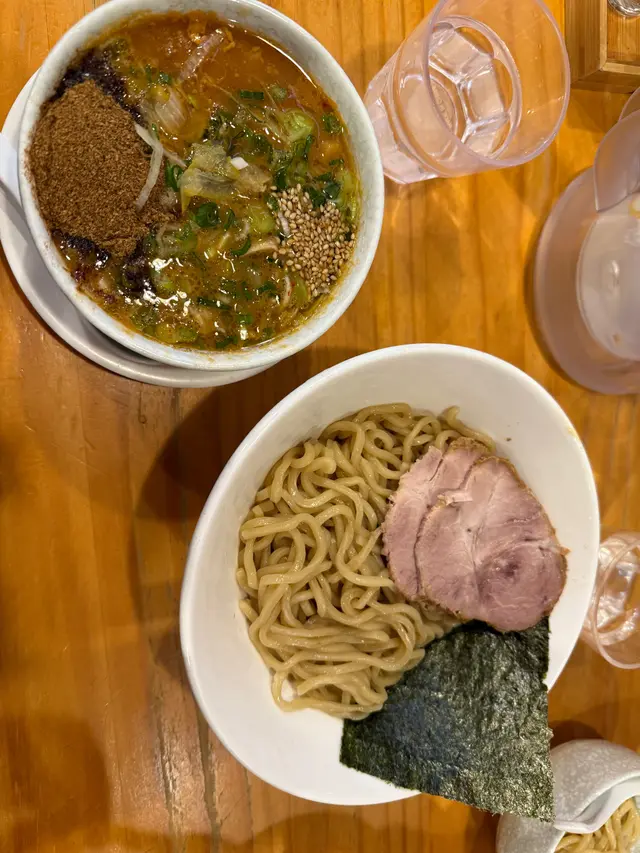 魚介豚骨沾麵 $80成set黎到賣相相當好。 湯味夠濃,唔會勁咸,食完冇好口渴。湯唔算杰身(個人喜好鐘意杰身啲,但佢都好好味) ,配有少少柚子食落濃而不膩。麵粗幼度適中有咬口,麵質食頭兩啖覺得略略硬左少少,但放耐左食多幾啖就慢慢balance返。 叉燒薄薄大大塊,肉質非常嫩,好味!個湯入面本身包有兩塊叉燒、半熟蛋。我extra加左叉燒同蔥。辛味噌沾麵(極辛)$90 湯夠辣,如果湯入面加豚角或其他配料冇咁單調就更好。 配料本身包括有叉燒、溫泉蛋、筍。Extra 加左叉燒同筍。 ******************************整體非常好,的確係香港食過最好食嘅沾麵。唯一希望湯個溫度可以keep耐啲就100分。 會想再食~~ ! 員工友善,看得出老闆用心。 …查看更多