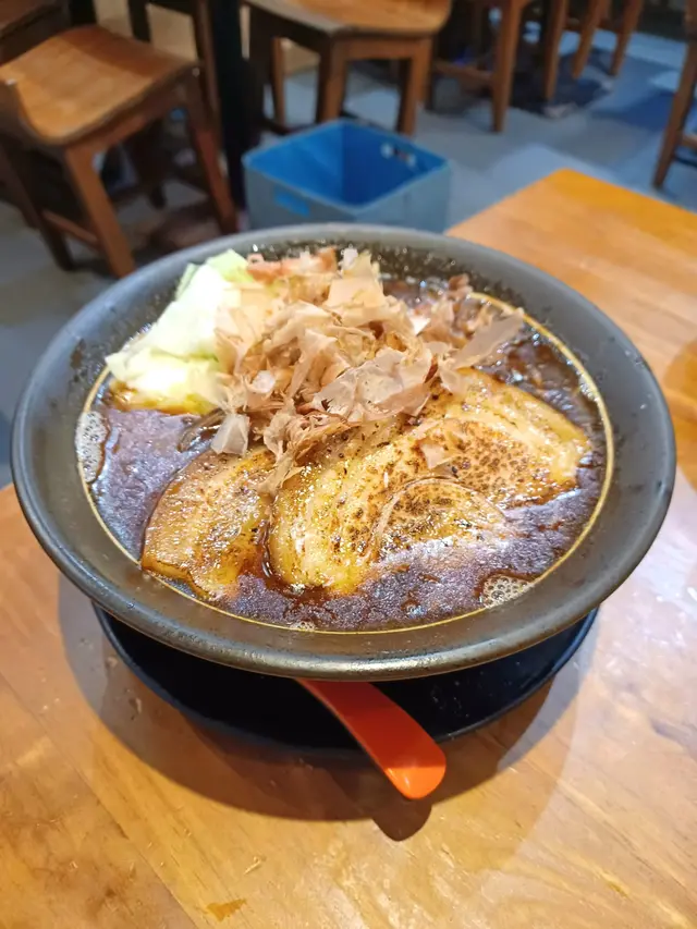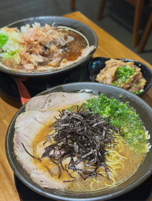 位於長沙灣道這間日式拉麵店,拉麵套餐非常吸引,價錢實惠,包括:拉麵+小食+飲品,配搭選項不少。還有其他食品選擇。舖面不算大,但坐椅相對寬敞,日式裝修風格,牆上海報展示餐廳開業十周年紀念。我點了兩份拉麵套餐:拉麵「鰹魚拉麵」選配“火炙腩肉”及“椰菜”