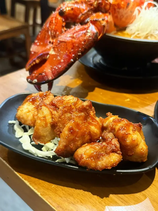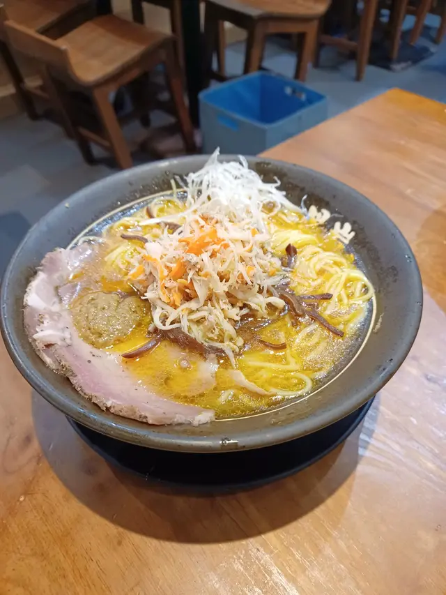 同是大大碗熱騰騰送上,上面鋪滿蟹肉、燒肉及配菜。蟹肉及燒肉鮮味十足,拉麵富口感,配上濃郁湯底,真是吃不停口。小食「日式炸蝦餅」