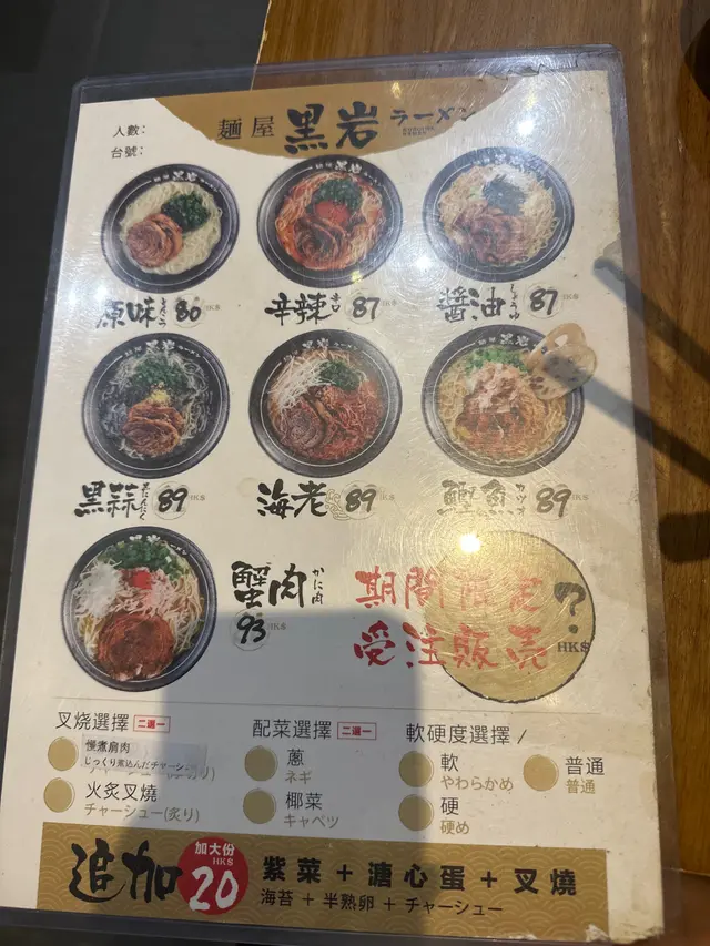 鰹魚拉麵,蟹肉拉麵,日式炸蝦餅,唐揚雞肉,自家製飲品