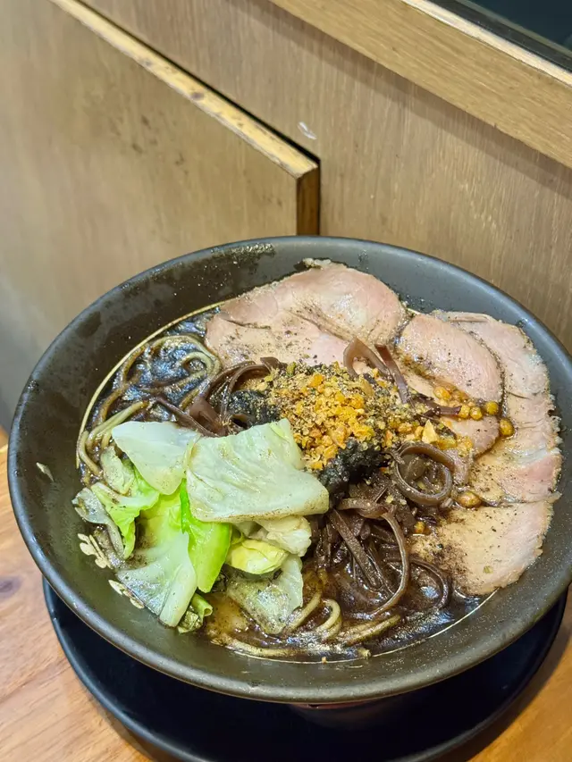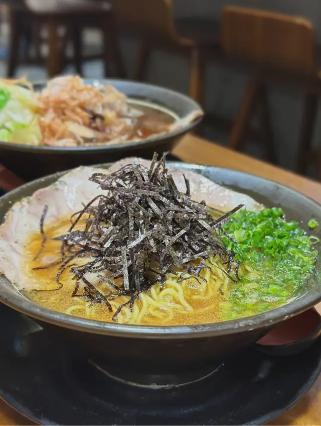 份量不少,兩大塊半肥瘦腩肉,燒得甘香入味,配上爽口的椰菜和海帶絲,香味濃郁的鰹魚片,腍軟爽脆雙重口感。拉麵份量不少,還可選適合自己的軟硬度。湯底是經12小時手工肴製的濃豬骨湯,真材實料,每一口都好滋味。「蟹肉拉麵」