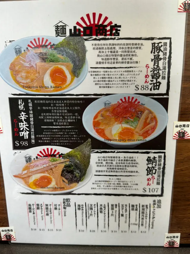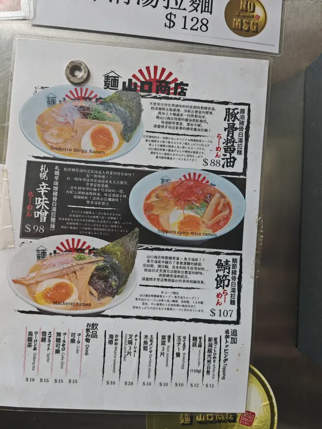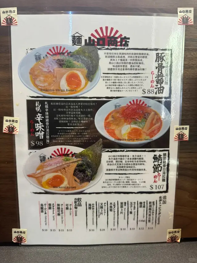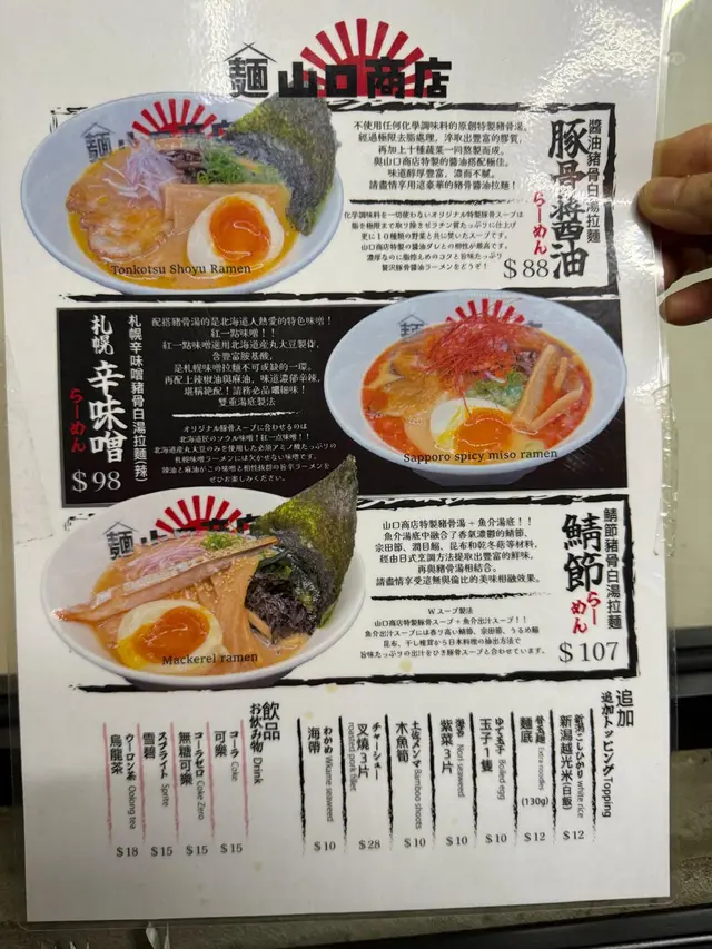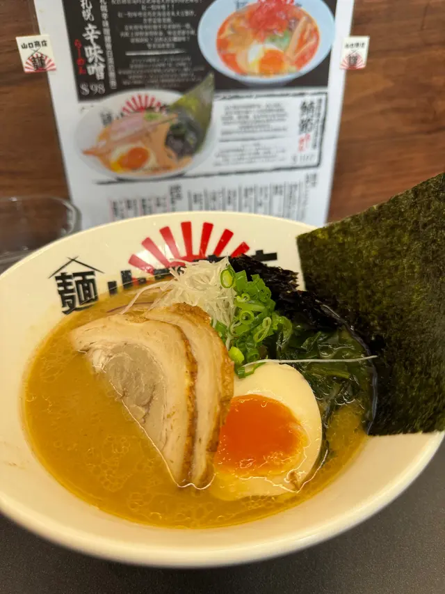 早就想試油麻地呢間由真北海道人同港人太太主理嘅「麵山口商店」。幾年前兩夫婦曾喺大角咀開外賣小店,當時我好鍾意佢哋嘅腐皮壽司,但最終小店結業收場。睇吓佢哋東山再起轉型做拉麵會點。點咗個鯖節豬骨白湯拉麵同辣帆立貝口味嘅「貓飯」。拉麵係豬骨同魚介湯底混合,濃得嚟算順喉,不過飲到最後幾啖可能會偏鹹咗少少,所以學日本人食到最後撈白飯應該會match。配搭呢個湯底嘅喺似油麵嘅偏幼身麵,兩樣嘢都夾嘅。配料仲有叉燒、味玉同筍乾。至於鯖節係用嚟刨木魚碎嘅「鰹節」嘅親戚,外表幾靚仔,食落帶點微酸味,可以平衡一吓碗麵嘅油膩度。不過,鯖節係咪令碗麵變化好大我又唔覺。整體嚟講碗拉麵都有心機做嘅,味道亦有中上水平。反而「貓飯」就係MVP。睇過《深夜食堂》嘅應該知「貓飯」喺咩嚟。呢度除了基本材料木魚碎同白飯外,仲加咗辣帆立貝干、蛋、紫菜、葱、魚介粉等,撈亂後辣辣地幾惹味,啱食。兩樣嘢埋單$145,算香港正常拉麵店價錢囉。下次嚟我應該會試吓辣味噌拉麵,睇吓老闆做唔做到北海道家鄉嘅感覺。…查看更多